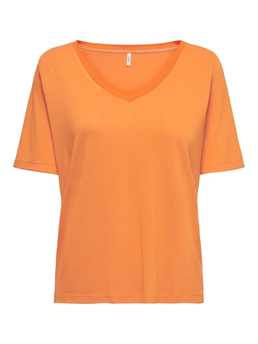 Upgrade je garderobe met deze stijlvolle oranje top van het merk Only, verkrijgbaar bij NummerZestien. Deze top is perfect voor de lente- en zomermaanden en kan gemakkelijk gecombineerd worden met verschillende outfits. De top heeft korte mouwen en een klassieke V-hals, waardoor het zowel casual als gekleed gedragen kan worden. Het regular fit model zorgt voor een comfortabele pasvorm, terwijl het materiaal van 70% viscose en 30% polyester zorgt voor een licht en luchtig gevoel. Met deze top ben jij helemaal klaar voor het warme seizoen en straal je gegarandeerd in de zon! Bestel nu snel en eenvoudig online bij NummerZestien en ontvang deze trendy top binnen enkele werkdagen in huis.
