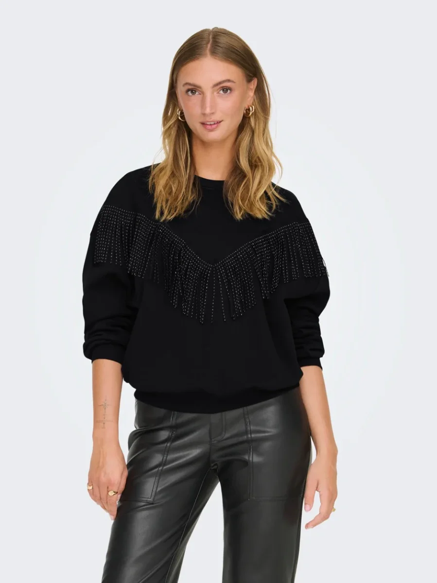 De ONLY sweater voor dames is een must-have voor je kledingkast. Deze stijlvolle zwarte sweater is gemaakt van 60% katoen en 40% gerecycled polyester, wat zorgt voor een comfortabele en duurzame pasvorm. De sweater is perfect voor elke gelegenheid en kan eindeloos gecombineerd worden met verschillende outfits. Met zijn casual look en zachte stof is deze sweater ideaal voor zowel een dagje uit als een avondje thuis op de bank. Bestel nu deze fashionable en eco-friendly sweater en voeg een must-have item toe aan je collectie.