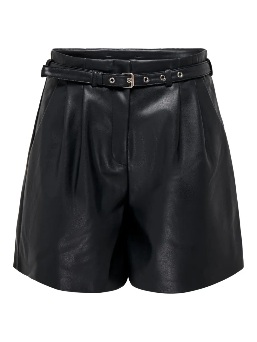 Deze zwarte short van het merk Only is perfect voor iedere vrouw die op zoek is naar een stoere en toch vrouwelijke outfit. Het imitatie leren materiaal geeft deze short een edgy look, terwijl de pasvorm en details zorgen voor een vrouwelijke touch.