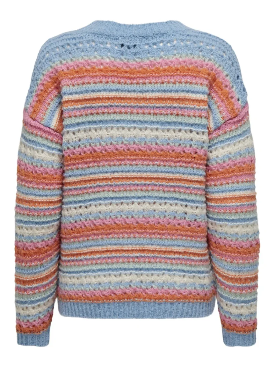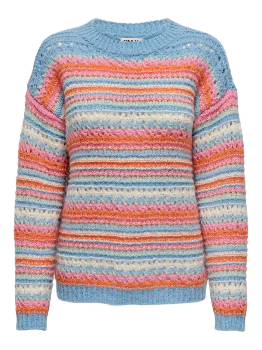Deze prachtige Only trui voor dames in de kleur blauw dessin is niet alleen stijlvol, maar ook nog eens duurzaam. De trui is namelijk gemaakt van 57% gerecycled polyester en 43% polyester. Dit zorgt niet alleen voor een unieke uitstraling, maar draagt ook bij aan een beter milieu. De trui heeft lange mouwen en een comfortabele pasvorm, waardoor hij perfect is voor elke dag. Of je nu kiest voor een casual look met een jeans of voor een meer geklede outfit, deze trui is altijd een goede keuze. Bestel hem nu bij nummerzestien en ervaar het comfort en de stijl van Only!