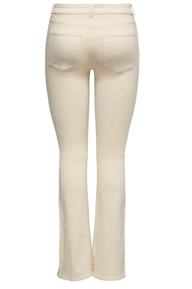 Verrijk je garderobe met deze prachtige ecru kleurige jeans bootcut flare fit van het bekende merk Only. Dit populaire model, genaamd Hush, is een must-have voor elke moderne vrouw die houdt van comfort en stijl. De flared jeans heeft een regular waist en is voorzien van een knoop- en ritssluiting. Het 5-pocket model is niet alleen trendy, maar ook erg praktisch voor het opbergen van je essentials. De broek is gemaakt van hoogwaardig materiaal, bestaande uit 98% katoen en 2% elastaan, waardoor het een perfecte pasvorm en ultiem draagcomfort biedt. Deze tijdloze en veelzijdige jeans is geschikt voor elke gelegenheid, van casual tot chique. Bestel nu en steel de show met deze fashionable flare fit jeans van Only.