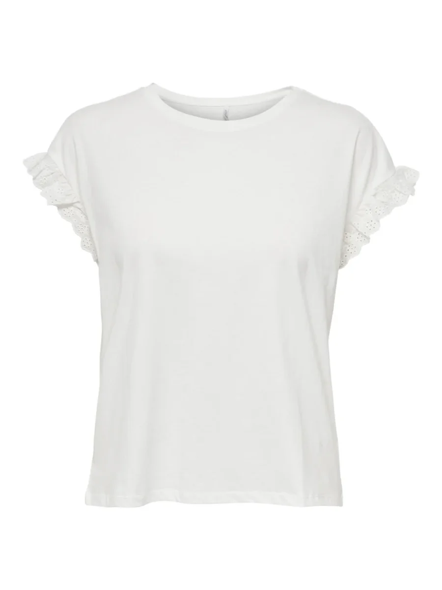 Dit trendy t-shirt van Only is een must-have voor elke vrouwelijke kledingkast. De off-white kleur zorgt voor een frisse en moderne uitstraling. De ronde hals en korte mouwen zorgen voor een comfortabele pasvorm, die perfect is voor elke gelegenheid. Maar wat dit t-shirt echt uniek maakt, zijn de subtiele franje details op de mouwen. Hiermee creëer je direct een speelse en stijlvolle look. Het t-shirt is gemaakt van 100% katoen, wat zorgt voor een zacht en ademend gevoel op de huid. Dit maakt het shirt niet alleen trendy, maar ook nog eens erg comfortabel om te dragen. Maak jouw outfit compleet met dit prachtige off-white t-shirt van Only en straal de hele dag door!