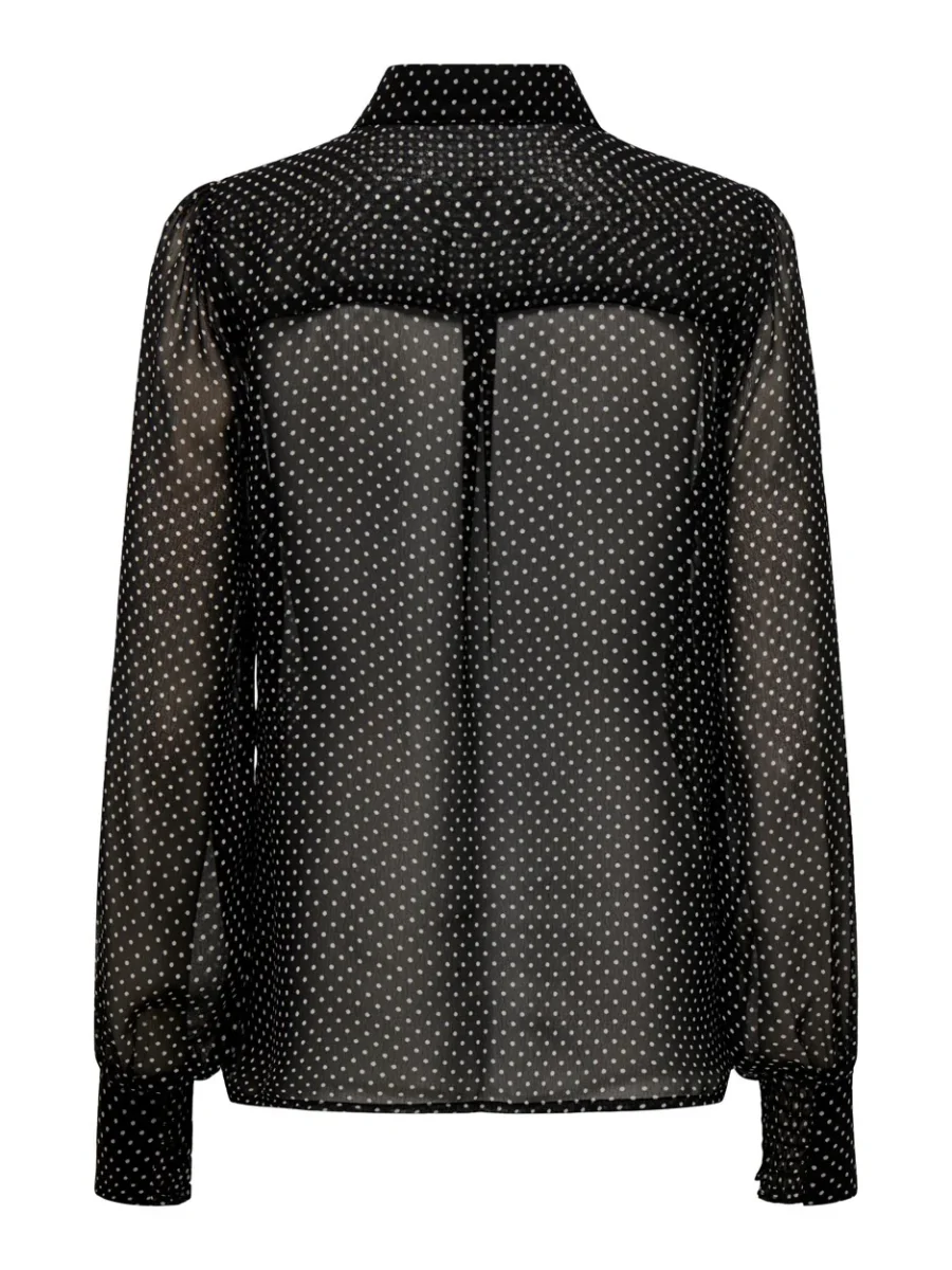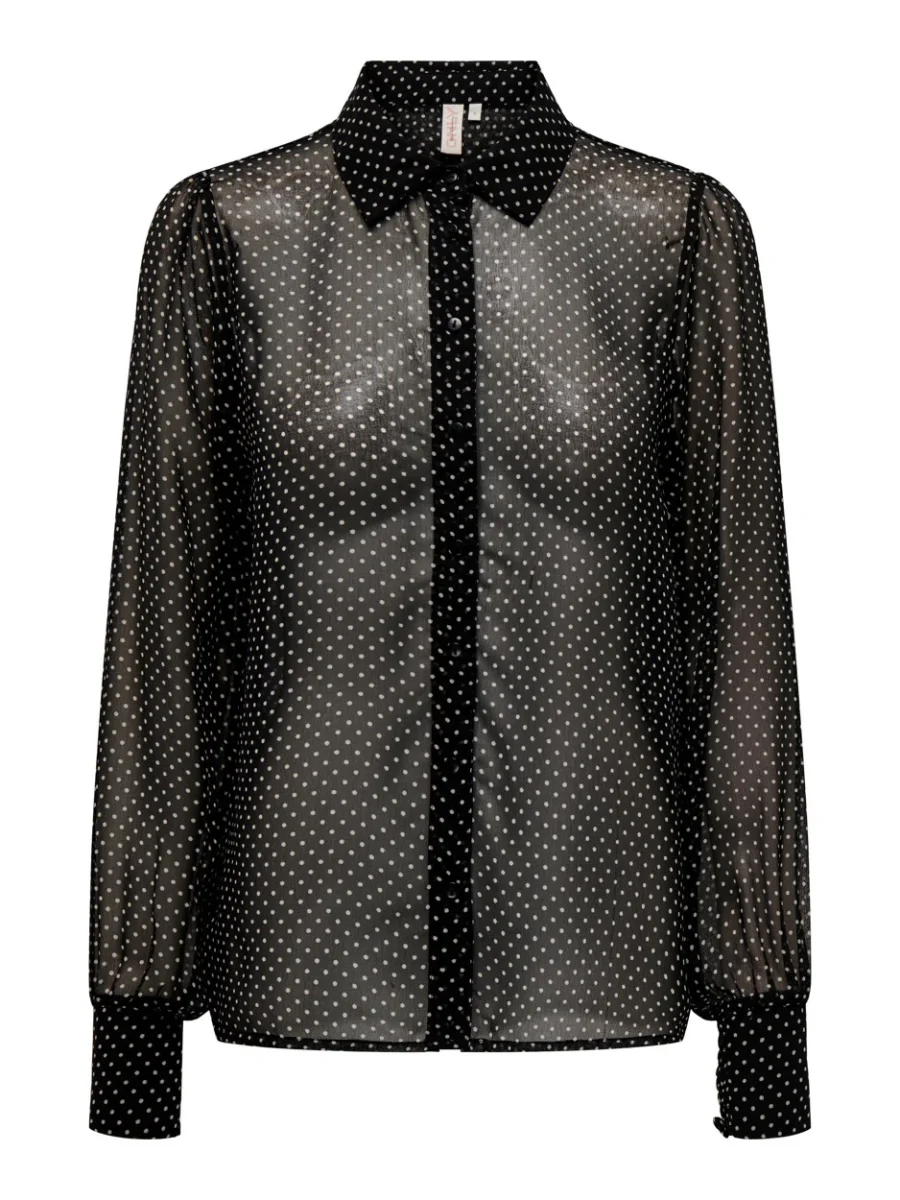 Deze prachtige zwarte dessin blouse van Only is een must-have voor elke moderne vrouw. De blouse is voorzien van een stijlvol all-over stippen patroon, wat zorgt voor een speelse en tegelijkertijd chique uitstraling. De semi-transparante stof geeft de blouse een elegante touch en maakt het perfect voor zowel zakelijke of feestelijke gelegenheden.