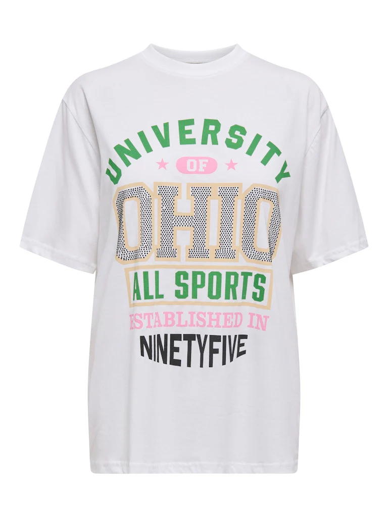 Deze frisse witte t-shirt van het hippe merk Only is een must-have voor jouw garderobe! Het is gemaakt van 100% katoen, wat zorgt voor een zachte en comfortabele pasvorm. Het shirt heeft een klassieke ronde hals en korte mouwen, waardoor het perfect is voor elke gelegenheid. Of je nu gaat voor een casual look of een chique outfit, deze t-shirt is altijd een goede keuze. Combineer het met een rokje en sneakers voor een stoere look of draag het onder een blazer voor een meer geklede uitstraling. Bestel nu deze veelzijdige witte t-shirt voor dames bij Nummerzestien en geef jouw kledingcollectie een trendy update!