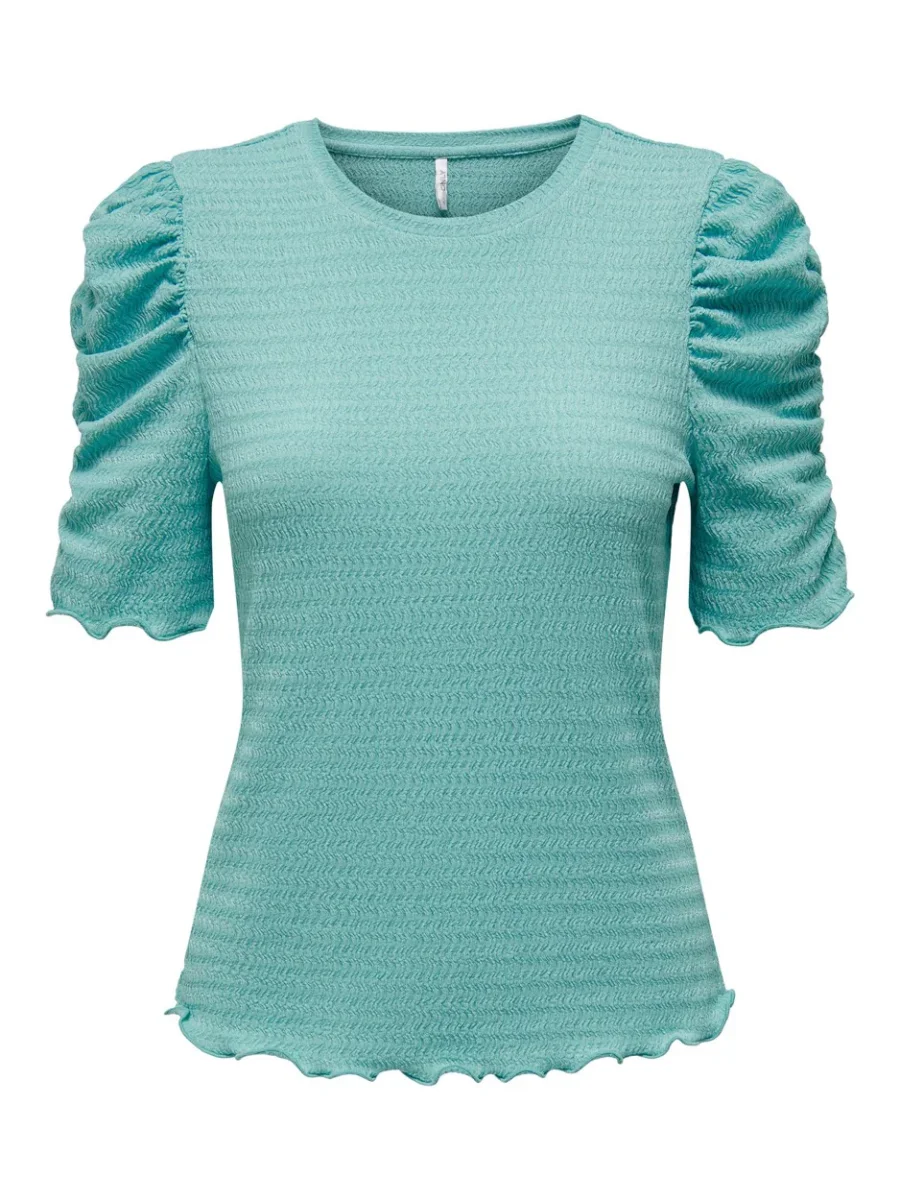 De Nummerzestien kledingwebshop presenteert met trots de Only Katie Top. Deze prachtige top is perfect voor de trendy en modebewuste vrouw. De top has pofmouwen en een vrouwelijke ronde hals, wat zorgt voor een speelse en elegante uitstraling. In de mooie aqua kleur is deze top een echte eyecatcher!