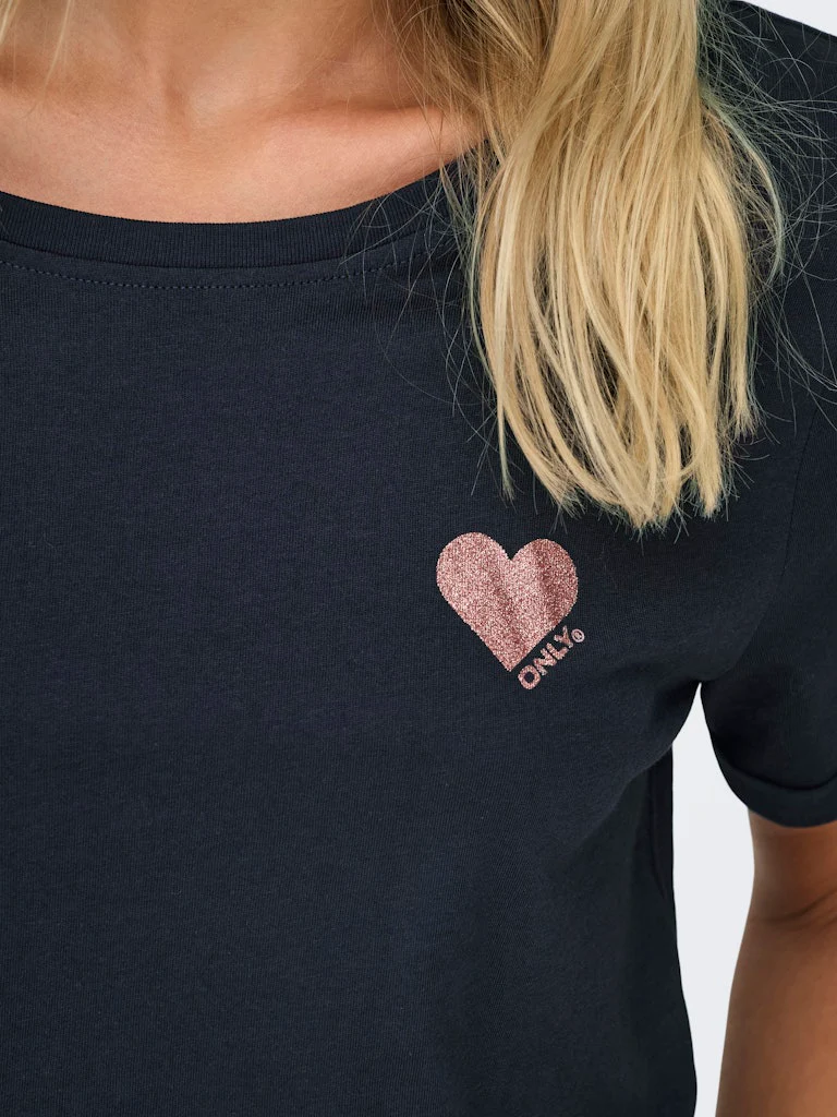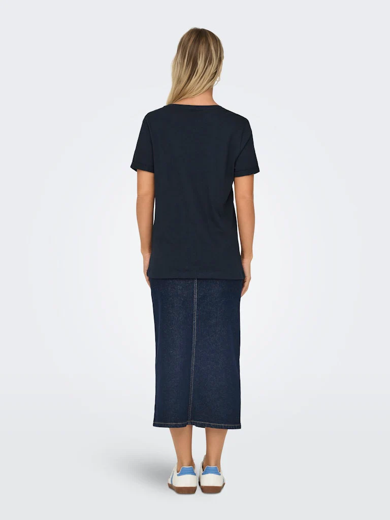 Upgrade jouw garderobe met dit stijlvolle navy t-shirt voor dames van Only. Het comfortabele katoenen materiaal is perfect voor iedere gelegenheid. Het t-shirt heeft een tijdloze uitstraling en is de ideale basic voor in jouw kledingkast. Draag hem casual op een jeans of combineer hem met een blazer voor een meer geklede look. Dit item is onmisbaar in jouw collectie en zal zeker een favoriet worden. Bestel nu en geef jouw outfit een upgrade met dit prachtige t-shirt van Only!