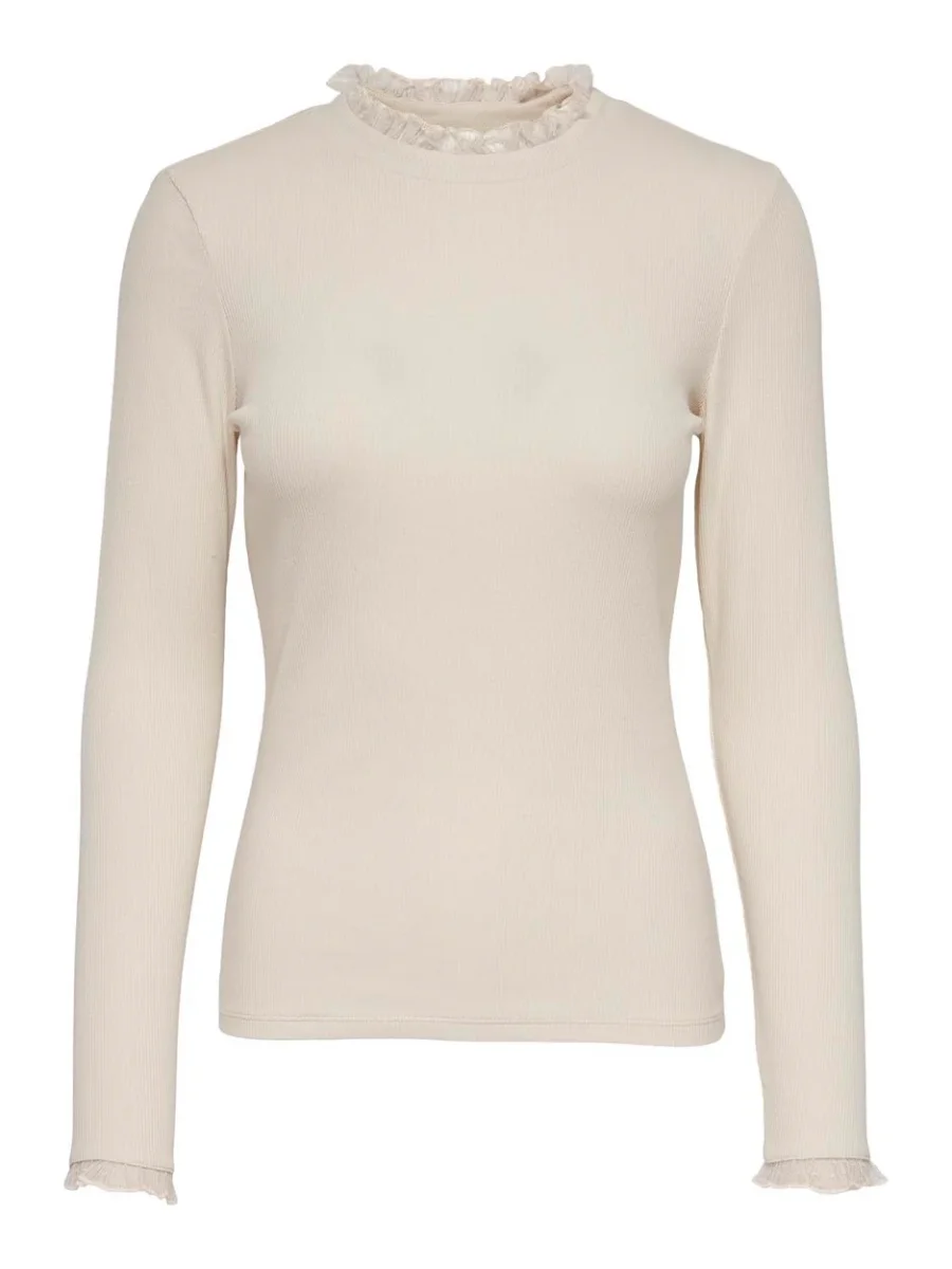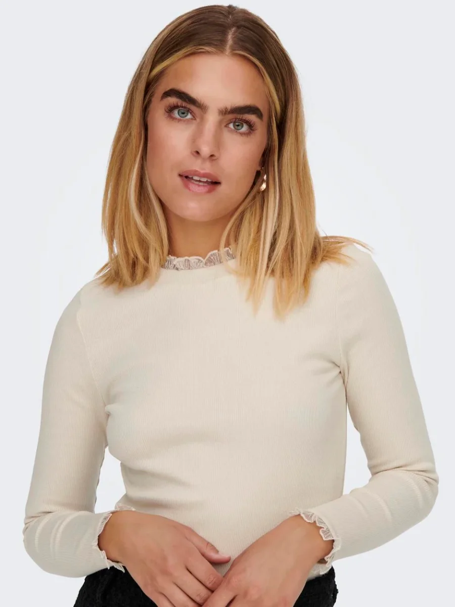 Dit ecru kleurige T-shirt met lange mouwen voor dames van het merk Only is de perfecte aanvulling op jouw garderobe. Gemaakt van 95% katoen en 5% elastaan, biedt dit T-shirt comfort en een perfecte pasvorm. De ecru kleur is veelzijdig en gemakkelijk te combineren met verschillende outfits. Draag het T-shirt met een stoere jeans voor een casual look, of met een rok en hakken voor een meer geklede look. De stof is van hoge kwaliteit en voelt zacht aan op de huid. Bestel dit trendy T-shirt nu bij NummerZestien en geniet van de perfecte mix van comfort en stijl.