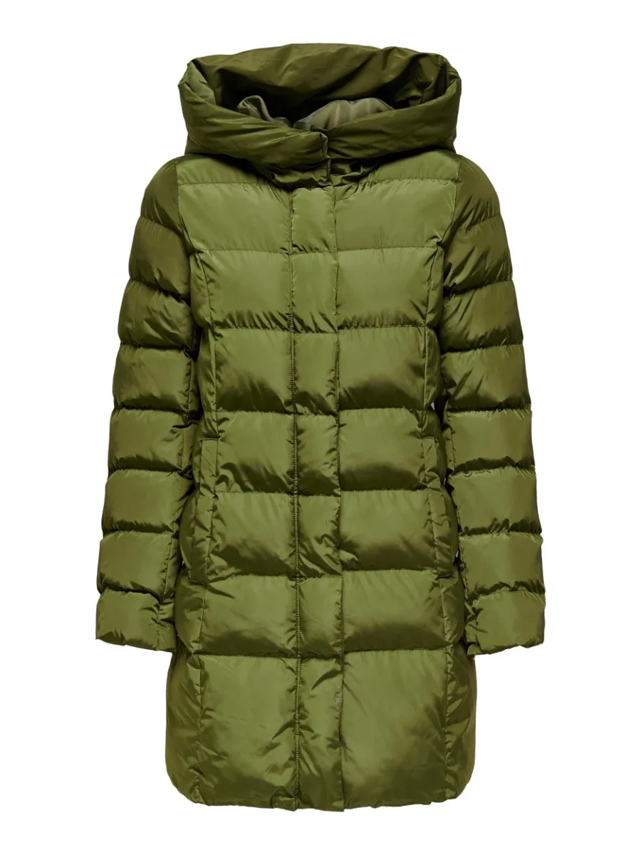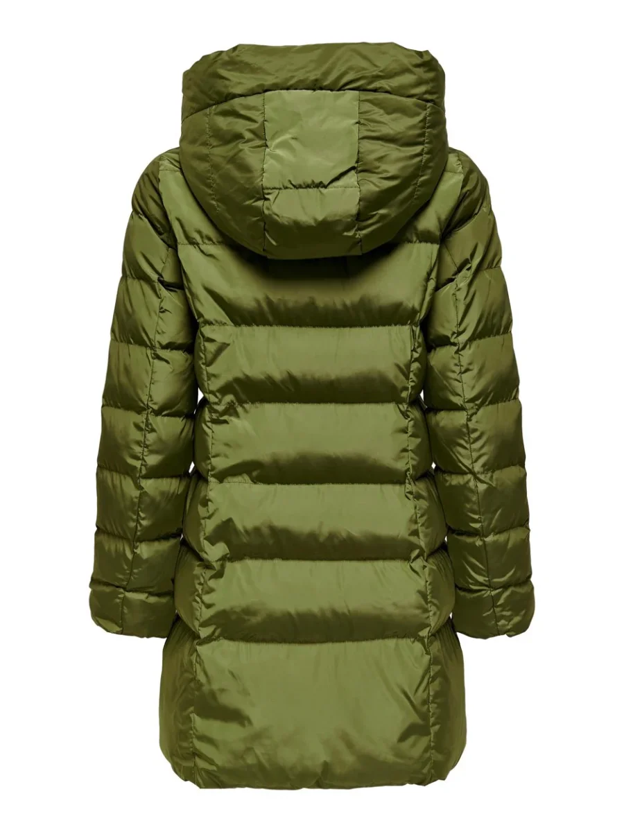 Deze gewatteerde tussenjas heeft een stijlvolle army groene kleur die een tijdloze en trendy look geeft. De jas is voorzien van twee steekzakken, die sluiten met een drukknoop voor het veilig opbergen van je persoonlijke spullen. Of je nu een dagje gaat shoppen of naar je werk gaat, deze Only Lina tussenjas is de perfecte aanvulling op elke outfit.