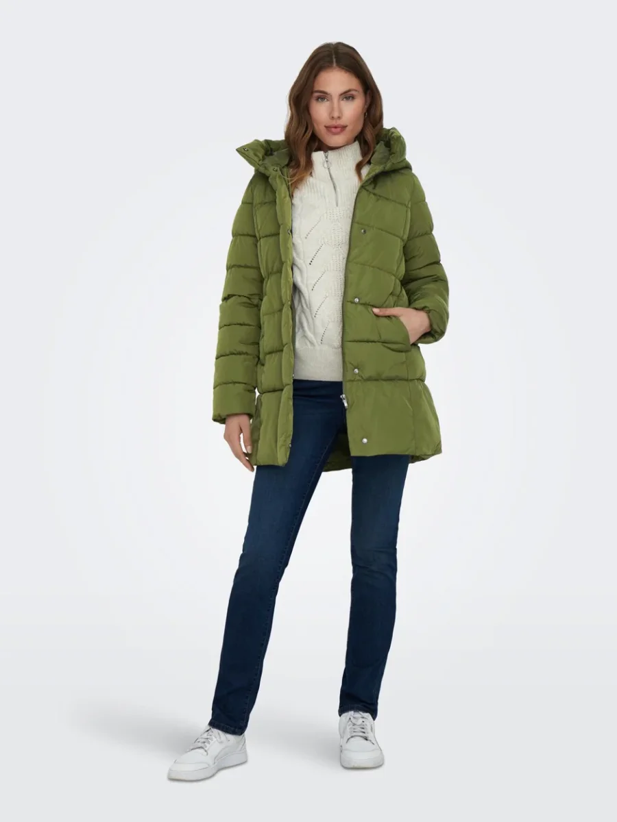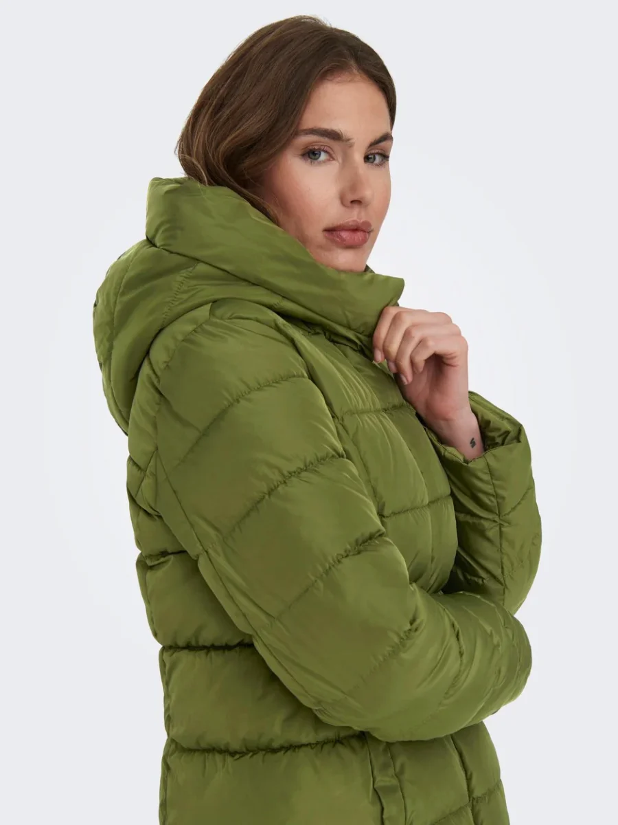 De Only Lina tussenjas voor dames is perfect voor de koudere dagen en voegt een vleugje stijl en warmte toe aan je kledingkast. Deze olijfkleurige tussenjas is gemaakt van hoogwaardig polyester materiaal en biedt ultiem comfort en duurzaamheid. De lange mouwen en vaste capuchon beschermen je tegen alle weersomstandigheden, terwijl de ritssluiting met windvanger en drukknopen zorgen voor extra warmte en bescherming.