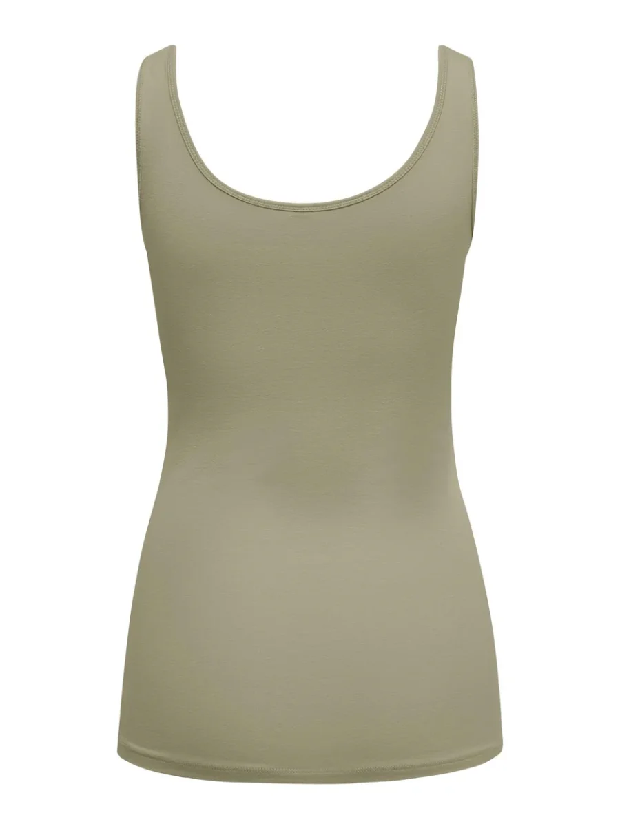De Only singlet is niet alleen een fashion statement, maar ook nog eens duurzaam geproduceerd. Een win-winsituatie dus! Zorg dat deze singlet in de kleur olijfgroen niet ontbreekt in jouw kledingkast en bestel hem nu bij NummerZestien.