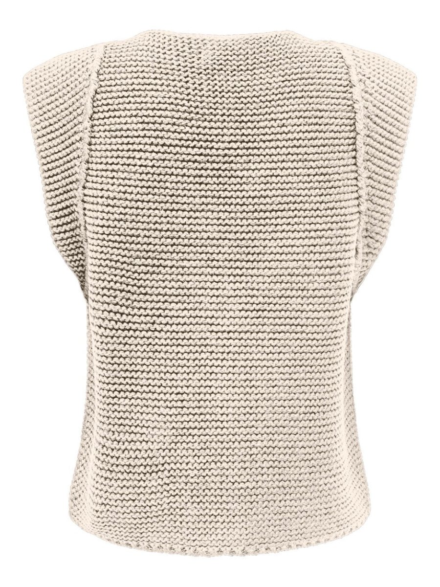 De beige Only Loui gebreide gilet zal een stijlvolle toevoeging zijn aan je garderobe. Dit mouwloze gilet is gemaakt van hoogwaardig, zacht materiaal van 100% acryl en is perfect voor elk seizoen. De subtiele beige kleur is eenvoudig te combineren en geeft een elegante touch aan elke outfit. Het gebreide patroon geeft het gilet een gezellige, maar toch trendy uitstraling. Draag het over een blouse voor een formele look of over een basic t-shirt voor een meer casual stijl. Bestel nu deze must-have gilet van het populaire merk Only bij NummerZestien en geef je outfit een fashionable touch!