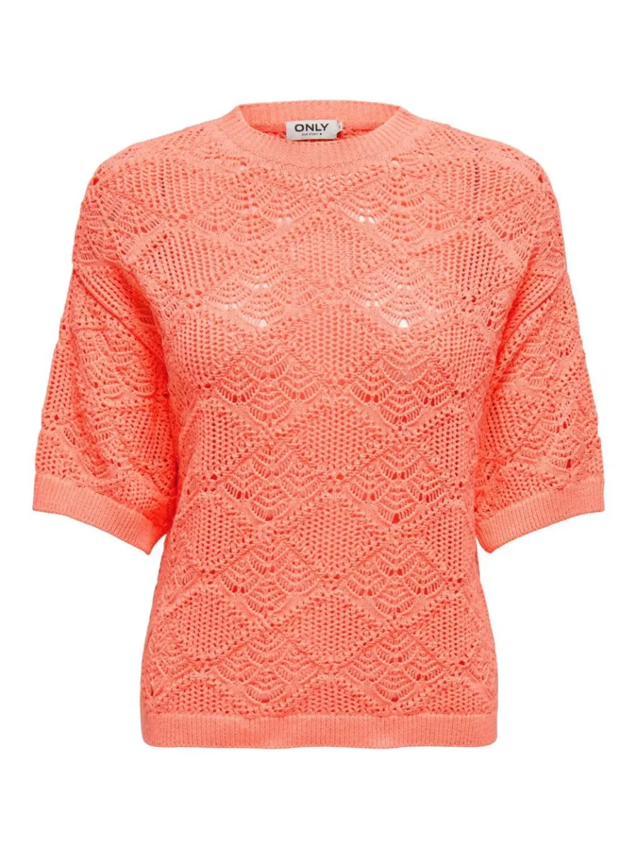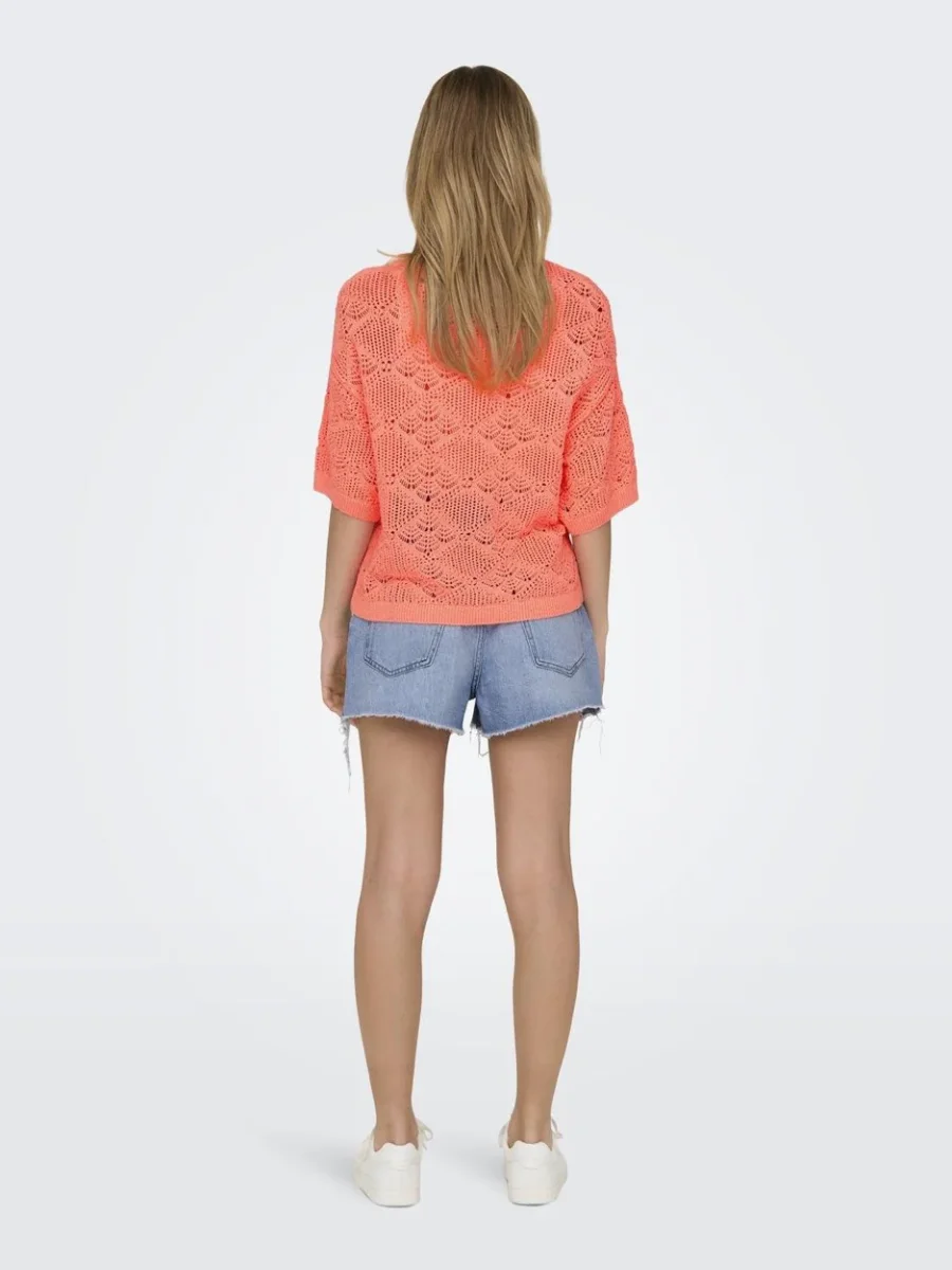 Deze oranje top van het populaire merk Only is een echte must-have voor elke damesgarderobe. De top heeft een korte mouw, waardoor deze perfect is voor zowel warme als wat koelere dagen. De opvallende oranje kleur geeft elke outfit een vrolijk en zomers tintje.