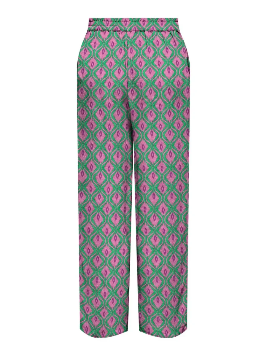 Deze stijlvolle en trendy lange broek voor dames is perfect voor elk seizoen. Het groene dessin zorgt voor een speelse touch en geeft een frisse uitstraling aan je outfit. De broek is van het populaire merk Only, wat staat voor kwaliteit en trendy fashion.
