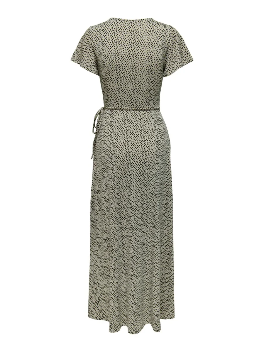 De perfecte zomerjurk voor jouw collectie! Deze geweldige Only Pauline wikkeljurk is een must-have voor elke fashionista. De prachtige kleur groen is het perfecte dessin voor deze maxi-jurk, die geschikt is voor iedere gelegenheid. Het wikkelmodel geeft jouw outfit een speelse en vrouwelijke touch. De korte mouwen en elegante V-hals maken deze jurk een echte eyecatcher.