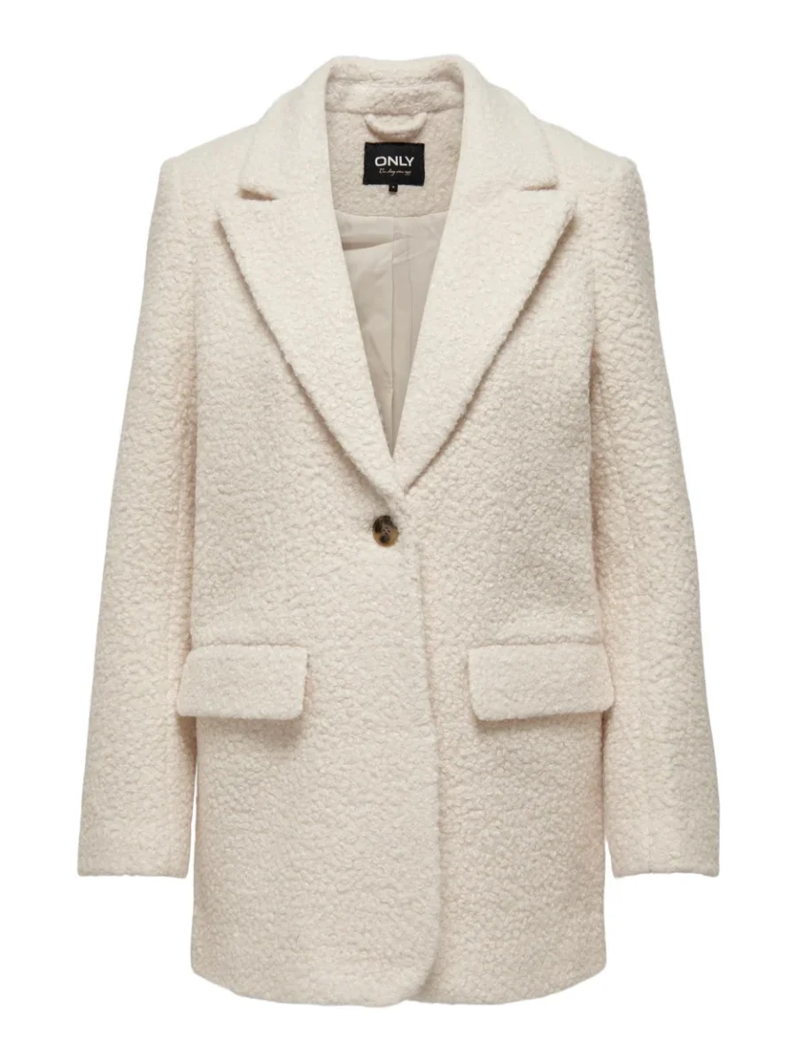 Deze stijlvolle tussenjas van het populaire merk Only is perfect voor de overgangsperiode van seizoenen. De subtiele off-white kleur zorgt voor een frisse en trendy uitstraling. De jas is voorzien van opgestikte zakken en een taille riem, waarmee je eenvoudig je figuur kunt accentueren. De V-hals en kraag geven de jas een vrouwelijke touch.