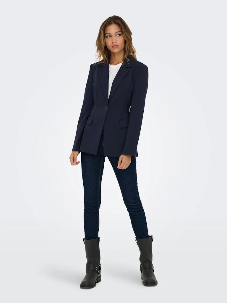 Upgrade jouw garderobe met deze stijlvolle navy blazer dames van het geliefde merk Only. Deze klassieke blazer is gemaakt van hoogwaardig materiaal, bestaande uit 50% gerecycled polyester, 24% polyester, 20% viscose en 6% elastaan. Door het gebruik van gerecycled polyester draag jij niet alleen bij aan een duurzamere wereld, maar zie je er ook nog eens trendy uit. De blazer heeft een tijdloos design en is perfect te combineren met zowel een casual als een formele outfit. Met deze blazer ben jij klaar voor iedere gelegenheid. Bestel nu deze must-have toevoeging aan jouw kledingkast bij NummerZestien en geniet van een echte eyecatcher in jouw kledingcollectie!