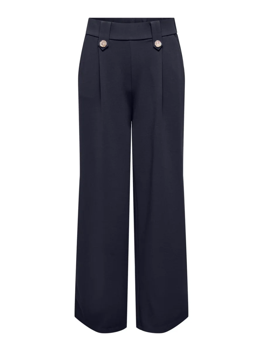 Deze navy broek van Only heeft een wijde pijp en is ideaal voor zowel formele als informele gelegenheden. Of je nu naar je werk gaat of een avondje uit, met deze broek zie je er altijd modieus uit. Bestel nu deze tijdloze en elegante broek bij Nummerzestien en creëer moeiteloos de perfecte outfit!