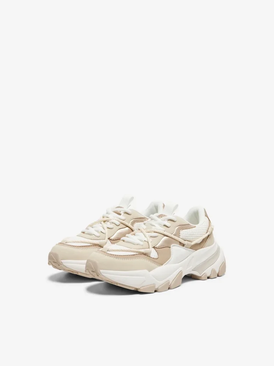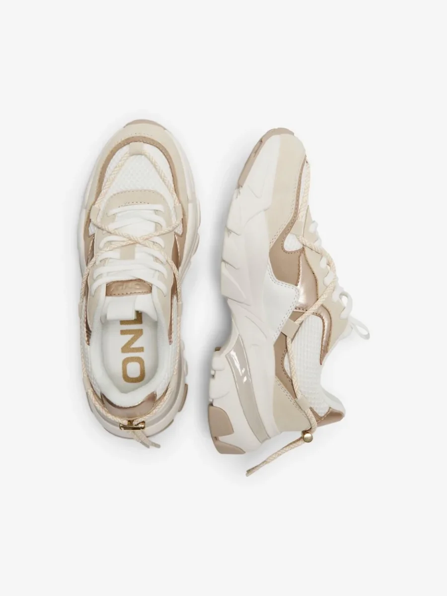 De Only sneaker in zand dessin is perfect voor dames die op zoek zijn naar comfort en stijl. Het subtiele dessin geeft de schoen een speelse uitstraling en maakt het makkelijk te combineren met verschillende outfits. De beige en witte kleuren geven een frisse en trendy look, waardoor deze schoenen een must-have zijn voor elke fashionista. Deze sneakers zijn van het bekende merk Only, wat garant staat voor hoge kwaliteit en duurzaamheid. Ze bieden de perfecte balans tussen comfort en fashion, waardoor ze zowel geschikt zijn voor een casual als een geklede outfit. Met deze zand dessin sneakers van Only ben jij klaar om elke dag te stralen!