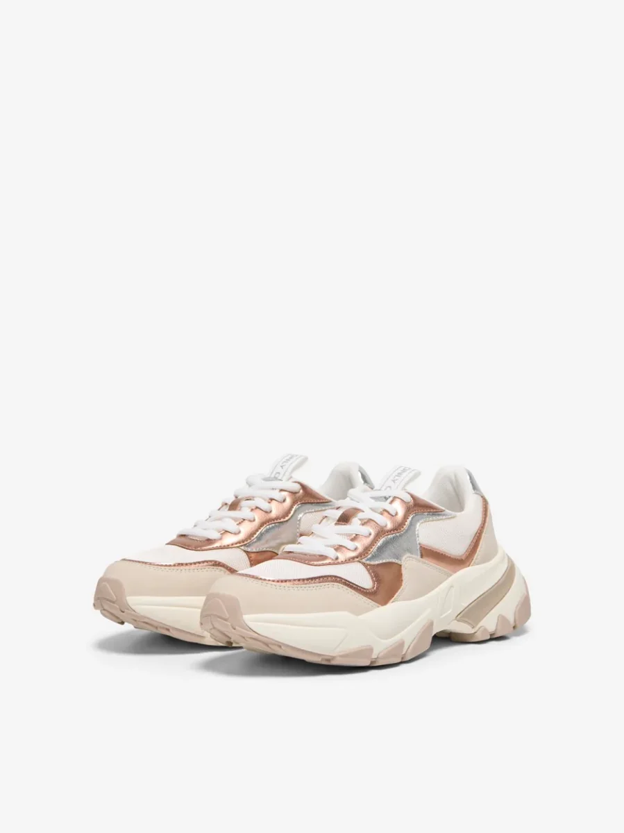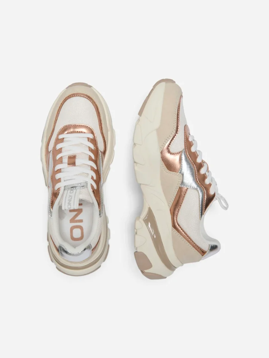 Upgrade je sneaker game met deze stijlvolle dames sneakers van het populaire merk Only. De sneakers zijn uitgevoerd in een trendy bruin dessin, wat zorgt voor een unieke uitstraling. De bovenkant van de schoen is gemaakt van 60% polyurethaan en 40% polyester, waardoor deze zowel stevig als comfortabel aanvoelt. De voering is volledig gemaakt van 100% polyester en de sok bestaat ook uit 100% polyester voor een optimale pasvorm. De zool van de sneaker is gemaakt van 30% thermo plastic rubber en 70% eva, wat zorgt voor een goede grip en demping tijdens het lopen. Deze sneakers zijn niet alleen een eyecatcher, maar ook zeer functioneel en van hoogwaardige kwaliteit. Voeg deze must-have toe aan je collectie en ervaar het comfort en de stijl van Only. Bestel nu en loop er modieus en comfortabel bij!