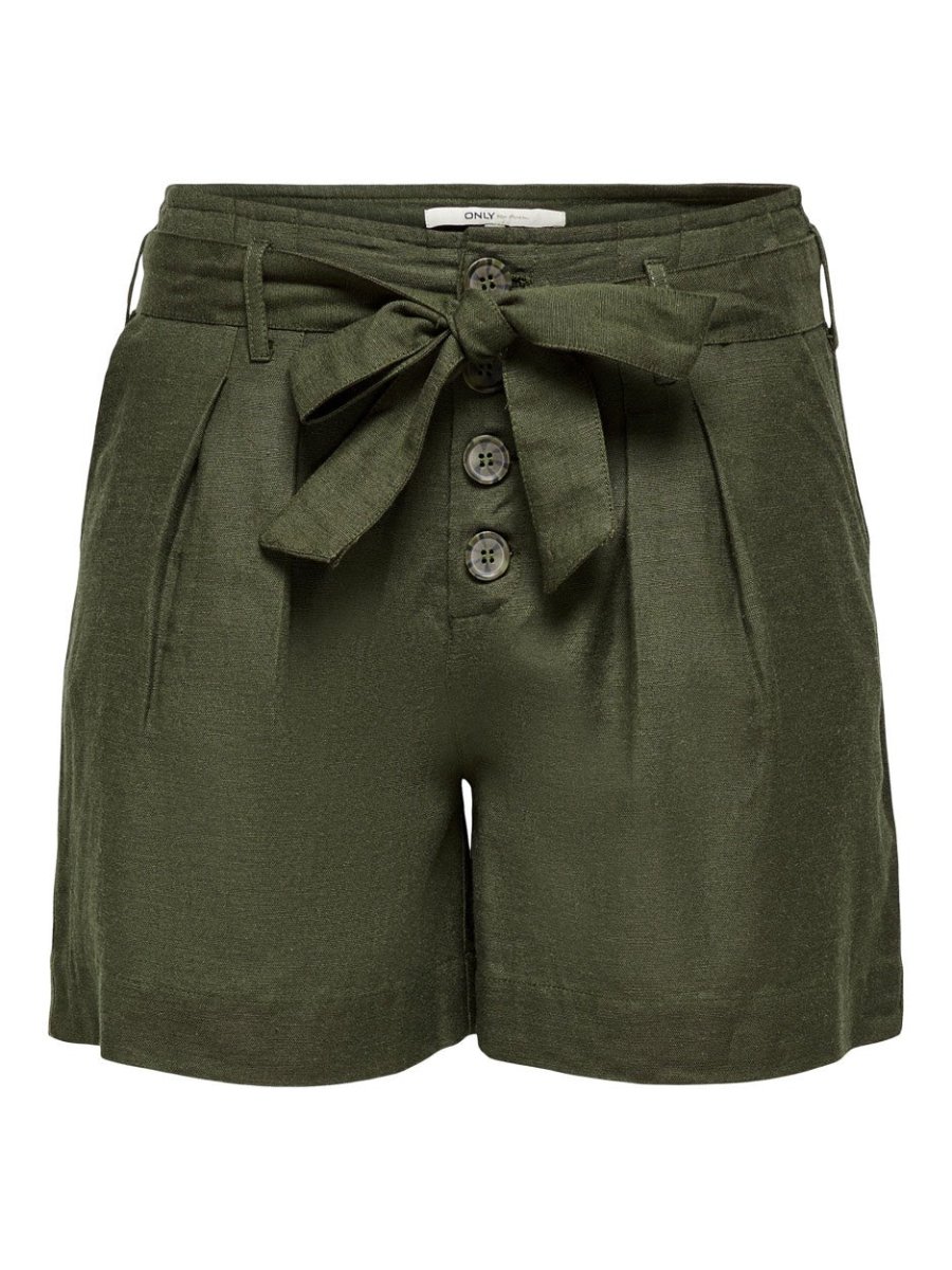 Gemaakt van hoogwaardig materiaal, 88% linnen en 12% katoen, is deze short niet alleen modieus maar ook duurzaam. De voorzijde van de short is voorzien van vier stijlvolle knopen en heeft een strikcentuur in de taille, waardoor je de pasvorm gemakkelijk kunt aanpassen naar jouw wensen.