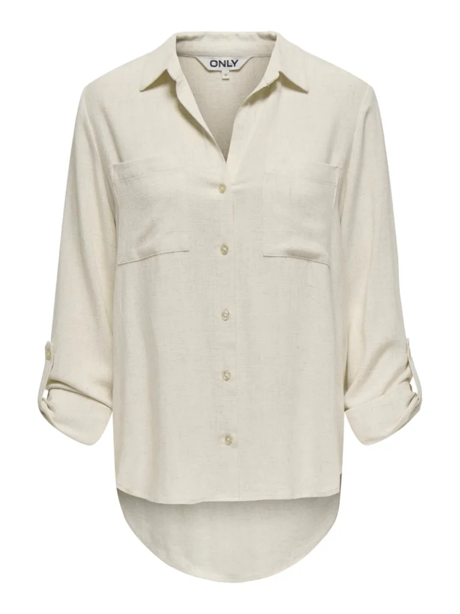 Deze prachtige, zandkleurige blouse van het merk Only is een must-have voor iedere vrouw. De lange mouwen zorgen voor een klassieke look, terwijl de lichte kleur zorgt voor een frisse uitstraling. Gemaakt van 80% viscose en 20% linnen, is deze blouse niet alleen stijlvol maar ook comfortabel. Deze stofcombinatie zorgt voor een zachte, ademende en duurzame blouse. Perfect voor zowel werk als vrije tijd. De blouse heeft een klassieke kraag met knoopsluiting en een subtiel geplooid detail aan de achterkant. Combineer deze blouse met een nette broek voor een professionele look of met een jeans voor een casual outfit. Shop nu deze veelzijdige blouse bij NummerZestien en voeg hem toe aan je garderobe!