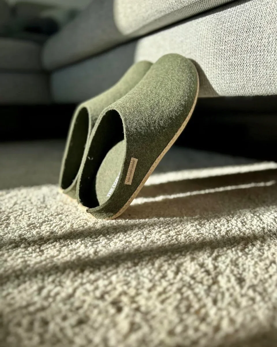 Met een eenvoudig en tijdloos Scandinavisch ontwerp passen onze luxe vilten pantoffels perfect in elk huis, ongeacht de stijl. Dit model heeft een zeer lichte en elegante suède zool, gemaakt van organisch leer van hoge kwaliteit. De pantoffels zijn uiterst comfortabel om te dragen en reguleren ook de temperatuur, wat betekent dat ze het hele jaar door kunnen worden gebruikt – niet alleen wanneer het buiten koud is.
