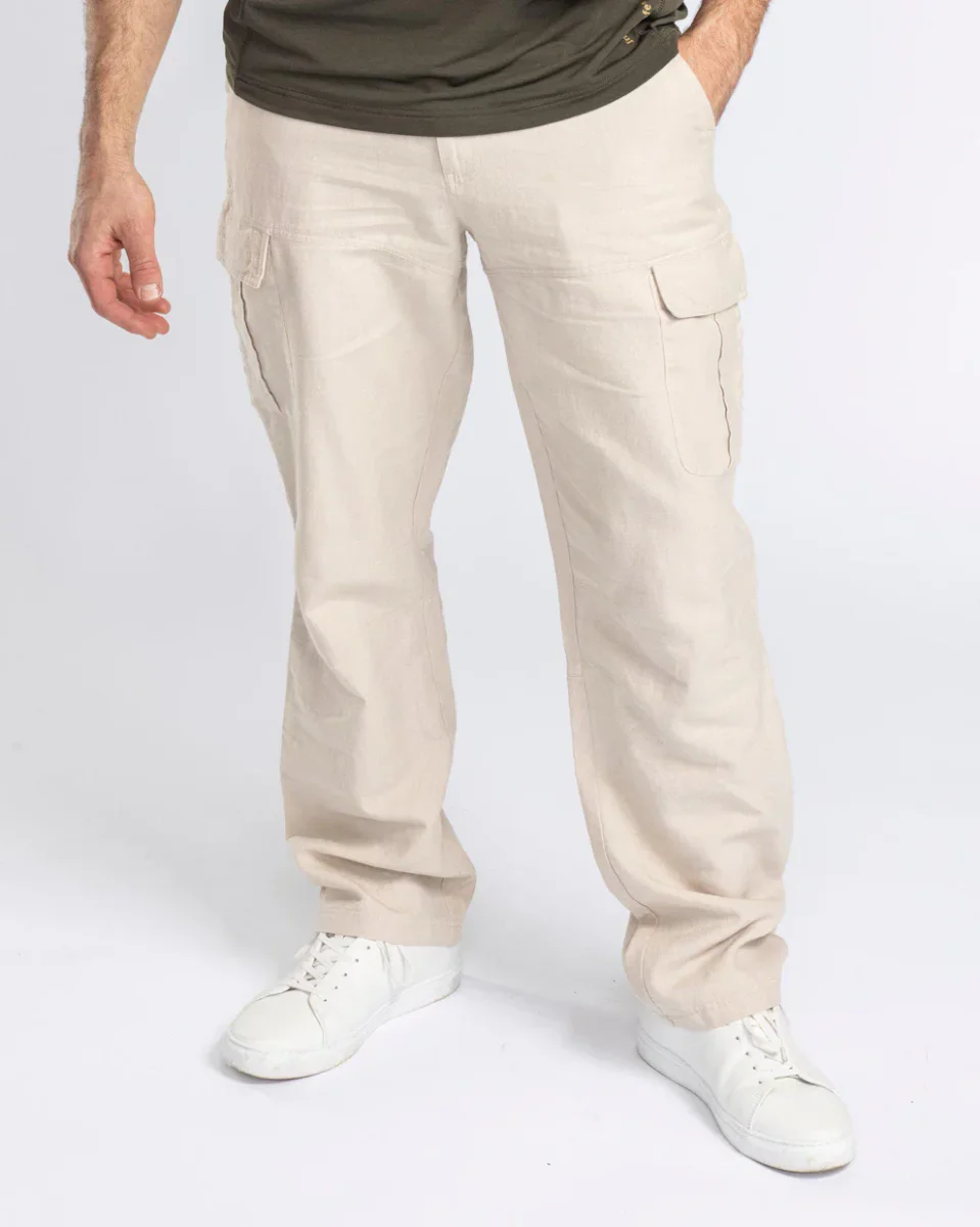 Lange broek met een hoog ademend vermogen die je koel houdt op warme dagen. Linnen is een onderhoudsvriendelijk materiaal gemaakt van natuurlijke vezels met een zacht oppervlak dat comfortabel aanvoelt tegen het lichaam. De stof is ook geïmpregneerd met een behandeling die muggen en teken weghoudt van het oppervlak. De broek heeft zowel steekzakken als dijbeenzakken om spullen in op te bergen.