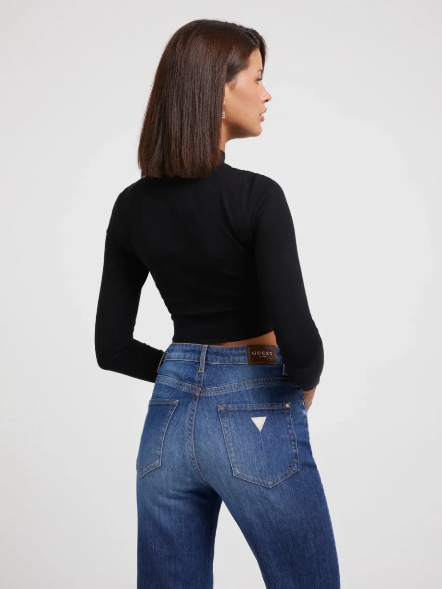 Update jouw basic t-shirt collectie met dit trendy Guess dames t-shirt in de kleur zwart. Dit shirt is voorzien van een opvallende rhinestones logo op de voorkant, wat zorgt voor een luxe en vrouwelijke uitstraling. De hooggesloten hals en lange mouwen maken dit t-shirt perfect voor de wat koudere dagen, terwijl de zachte stof van 71% viscose en 29% polyamide zorgt voor een comfortabele pasvorm. De subtiele zilveren strassteentjes maken het logo van Guess helemaal af en geven dit t-shirt een glamorous touch. Combineer met een stoere jeans en sneakers voor een casual look, of draag het met een rokje en hakken voor een feestelijke outfit. Upgrade jouw garderobe met dit eyecatching t-shirt van Guess dames en bestel hem nu in de webshop van NummerZestien!