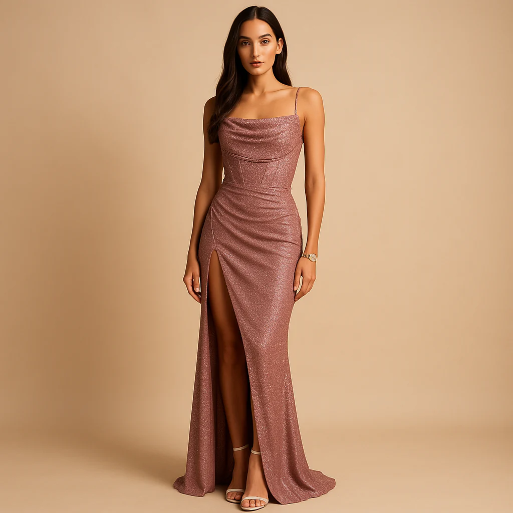 Maak een onvergetelijke entree met Elise, een satijnen corsetjurk met split voor dames die elegantie en verfijning uitstraalt. De gestructureerde corsetbovenkant zorgt voor een flatterende pasvorm, terwijl de verleidelijke hoge split moeiteloos beweging en allure toevoegt. De glanzende satijnen afwerking vangt het licht prachtig en maakt deze jurk ideaal voor gala’s, bruiloften en formele avonden.