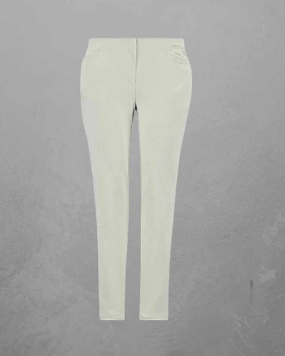 De Penny pantalon van Sensia Fashion is een klassieke damesbroek met een slanke slim fit pijp en een comfortabele elastische tailleband. De broek valt iets lager in de taille en heeft praktische steekzakken. Dankzij de soepele stofkwaliteit met stretch draagt deze pantalon heerlijk comfortabel gedurende de hele dag.
