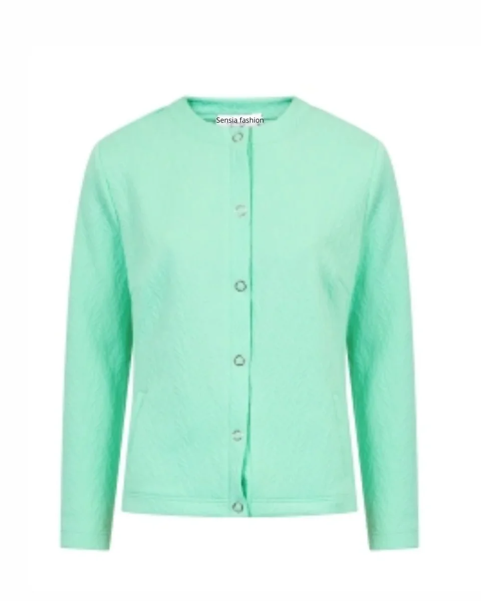 Het vestjasje Risana van Sensia Fashion is een comfortabel model in een soepele, elastische kwaliteit. Het jasje heeft een opstaand boordje en sluit met handige drukknopen. Voorin zitten praktische steekzakjes en dankzij het licht aansluitende silhouet met lange mouwen draagt het mooi en vrouwelijk. De effen stof heeft een subtiel bladmotief in de structuur, wat zorgt voor een rijke en verzorgde uitstraling.