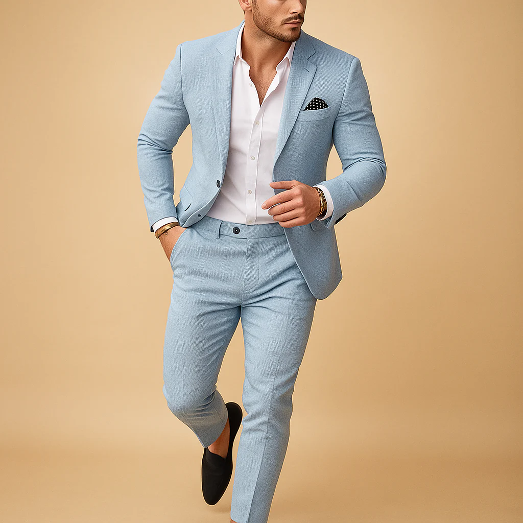 Maak kennis met Michael, een slim fit herenpak met blazer en pantalon dat moeiteloos stijl, comfort en klasse samenbrengt. Dankzij de nauwsluitende pasvorm en het veelzijdige ontwerp is dit pak perfect voor bruiloften, zakelijke bijeenkomsten of formele gelegenheden. Gemaakt voor mannen die een verfijnde uitstraling belangrijk vinden én waarde hechten aan draaggemak.