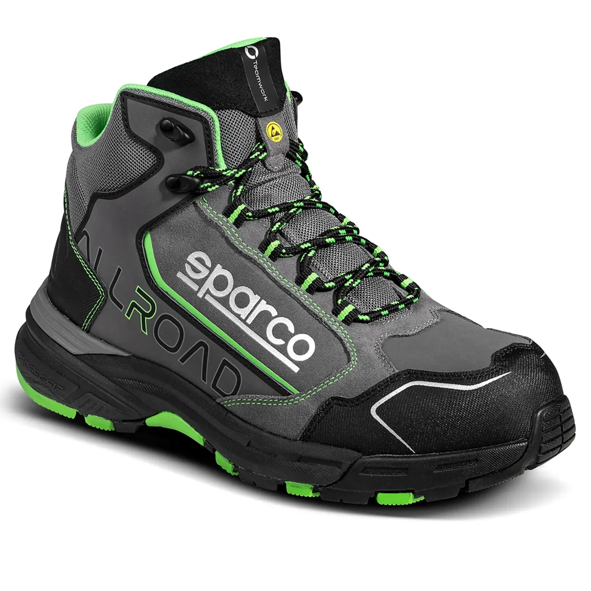 De Sparco Allroad LEAP S3S ESD veiligheidsschoenen combineren stijl, bescherming en comfort in één. Dankzij het waterafstotende bovenwerk en de robuuste zool zijn ze perfect voor zowel binnen- als buitengebruik.