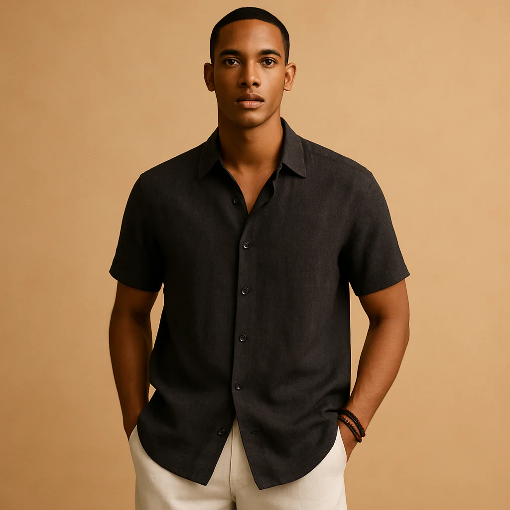 Ervaar ultiem comfort en tijdloze stijl met Daan, een casual zomershirt met korte mouwen voor heren dat perfect is voor zonnige dagen. Dankzij de regelmatige pasvorm en overhemdkraag is het ideaal voor vakanties, strandwandelingen of een relaxte dag in de stad. De effen kleur zorgt voor een veelzijdige look, terwijl de stijlvolle knopen het shirt een moderne twist geven. Een onmisbaar item voor elke man die graag moeiteloos stijl uitstraalt.