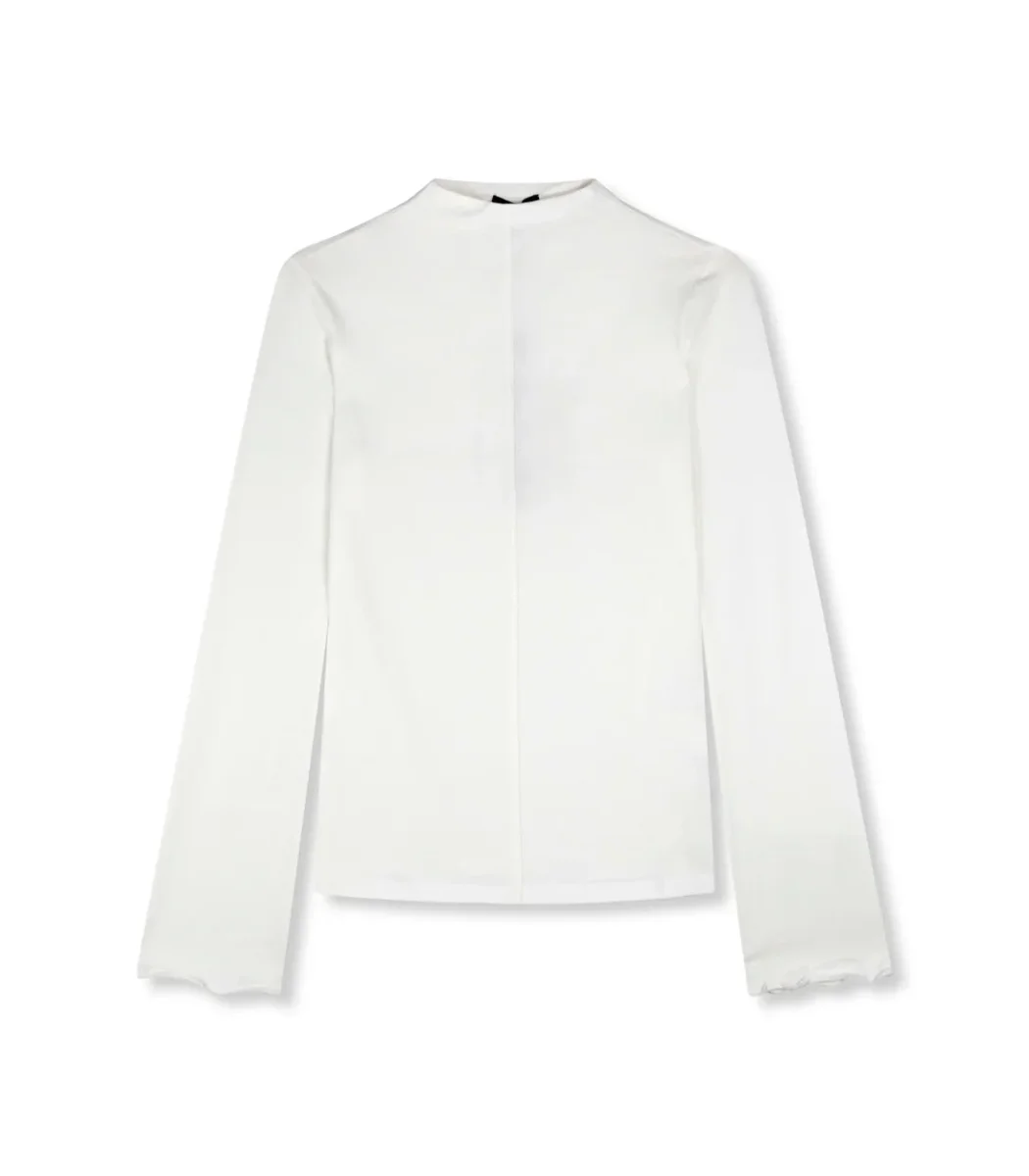 De top is ontworpen met zichtbare naaddetails, wat zorgt voor een subtiele twist. De flare mouwen en mock halslijn geven de top een extra vrouwelijke touch. Het model van de top is aansluitend, waardoor je figuur mooi uitkomt.