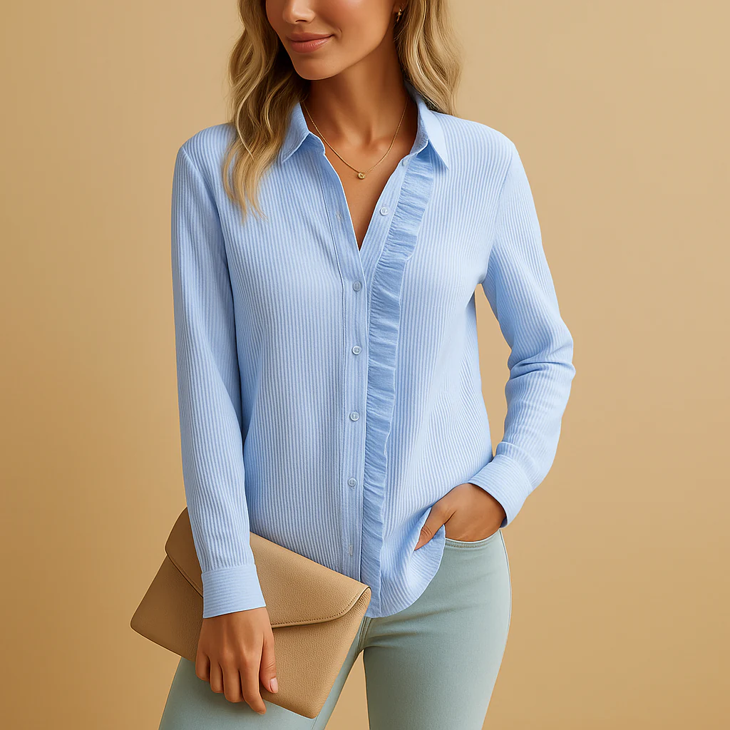 Voeg een vleugje elegantie toe aan jouw dagelijkse outfit met Tessa, een gestreepte blouse voor dames met subtiele ruches en een vrouwelijke pasvorm. De lichte, zachte stof biedt maximaal draagcomfort en maakt deze blouse ideaal voor zowel casual als geklede gelegenheden. Perfect te combineren met jeans, pantalons of een rok – voor een moeiteloos chique look.