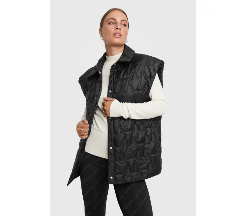 Deze prachtige bodywarmer van het merk Alix the Label is dé must-have voor iedere modieuze dame. De zwarte kleur geeft een tijdloze touch aan je outfit en is daardoor eindeloos te combineren. De bodywarmer heeft een trendy oversized pasvorm en is voorzien van een opvallende all-over stierenkop print. Dit geeft de bodywarmer een stoere en unieke uitstraling.