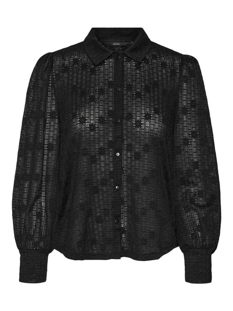 De zwarte blouse met lange mouwen voor dames van het bekende merk Vero Moda is een veelzijdig en tijdloos kledingstuk dat niet mag ontbreken in jouw garderobe. Gemaakt van hoogwaardige materialen zoals 95% polyamide en 5% elastaan, biedt deze blouse niet alleen een comfortabele pasvorm, maar zorgt ook voor een stijlvolle uitstraling. De diepe zwarte kleur geeft de blouse een klassieke en toch moderne look, perfect voor elke gelegenheid. Draag het met een pantalon voor een formele look, of combineer het met een jeans voor een casual outfit. Deze blouse is een must-have voor elke modebewuste vrouw en zal zeker een aanwinst zijn voor jouw kledingcollectie. Bestel nu en ervaar de veelzijdigheid en kwaliteit van deze prachtige blouse van Vero Moda.