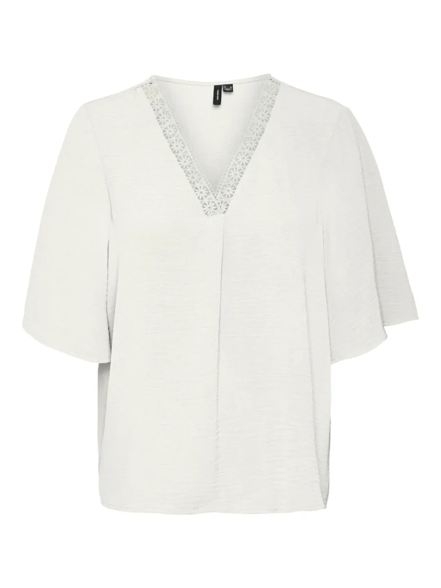 Voeg deze prachtige off-white top met korte mouwen toe aan je garderobe voor een stijlvolle en duurzame look! Deze top van het gerenommeerde merk Vero Moda is gemaakt van 100% gerecycled polyester, wat niet alleen goed is voor het milieu, maar ook voor jouw fashion statement. De cleane lijnen en subtiele textuur van de stof geven de top een elegante uitstraling die perfect is voor zowel casual als formele looks. De top heeft een comfortabele pasvorm en is ideaal voor warmere dagen, dankzij de luchtige stof. Draag hem op een jeans voor een casual look of combineer hem met een blazer voor een chique kantooroutfit. Met deze top laat je zien dat stijlvol en milieubewust hand in hand kunnen gaan. Shop nu deze must-have top bij NummerZestien en draag bij aan een duurzamere fashion industrie!