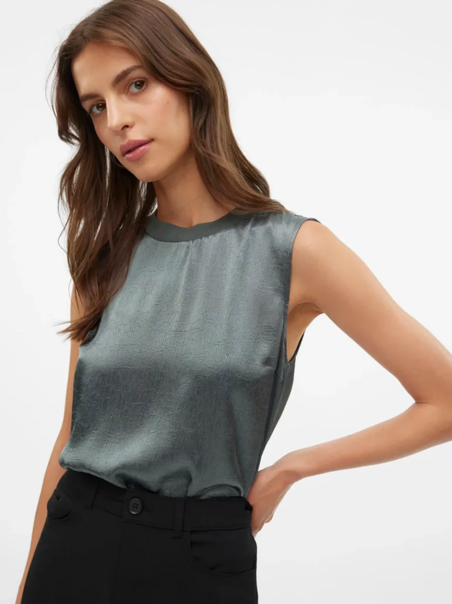 Deze oud groen gekleurde top van het merk Vero Moda is een must-have voor elke fashion-forward dame. Gemaakt van 51% gerecycled polyester en 49% polyester, is deze top niet alleen stijlvol maar ook duurzaam. De perfecte combinatie van mode en milieu! De top heeft een comfortabele pasvorm en is ideaal voor zowel casual als formele gelegenheden. Draag het op een rok voor een elegante look of combineer het met een spijkerbroek voor een casual vibe. Bestel nu deze trendy top bij NummerZestien en laat je groene kant zien!