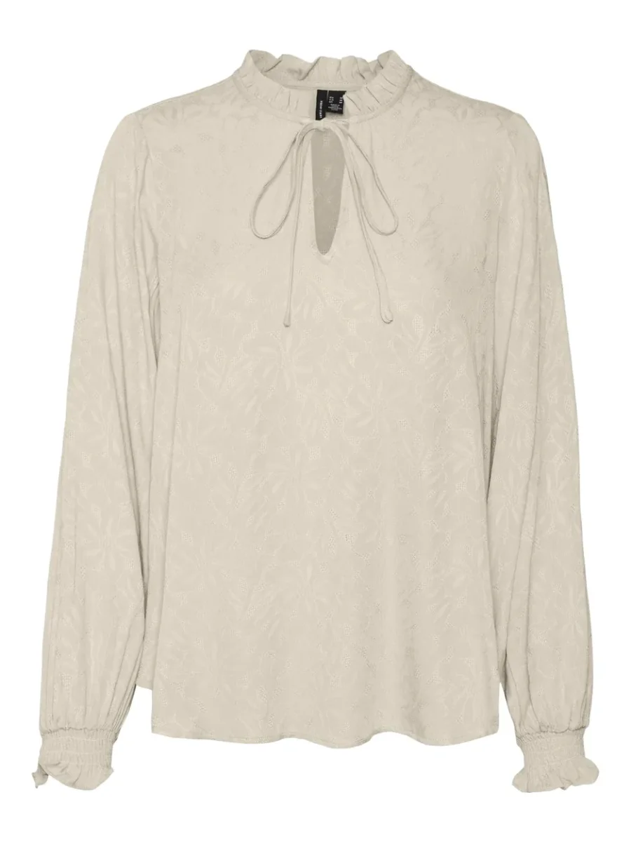 Deze prachtige off-white top van Vero Moda is een must-have voor elke moderne vrouw. De top heeft lange mouwen en is perfect voor het komende seizoen. Het zachte materiaal zorgt voor een comfortabele pasvorm en voelt heerlijk aan op de huid. De top heeft een elegante uitstraling door de mooie off-white kleur en is gemakkelijk te combineren met andere items in je garderobe. Of je nu naar een feestje gaat of gewoon een dagje uit, met deze top zie je er altijd stijlvol uit. Bestel snel deze trendy top en voeg een vleugje speelsheid toe aan je kledingcollectie!