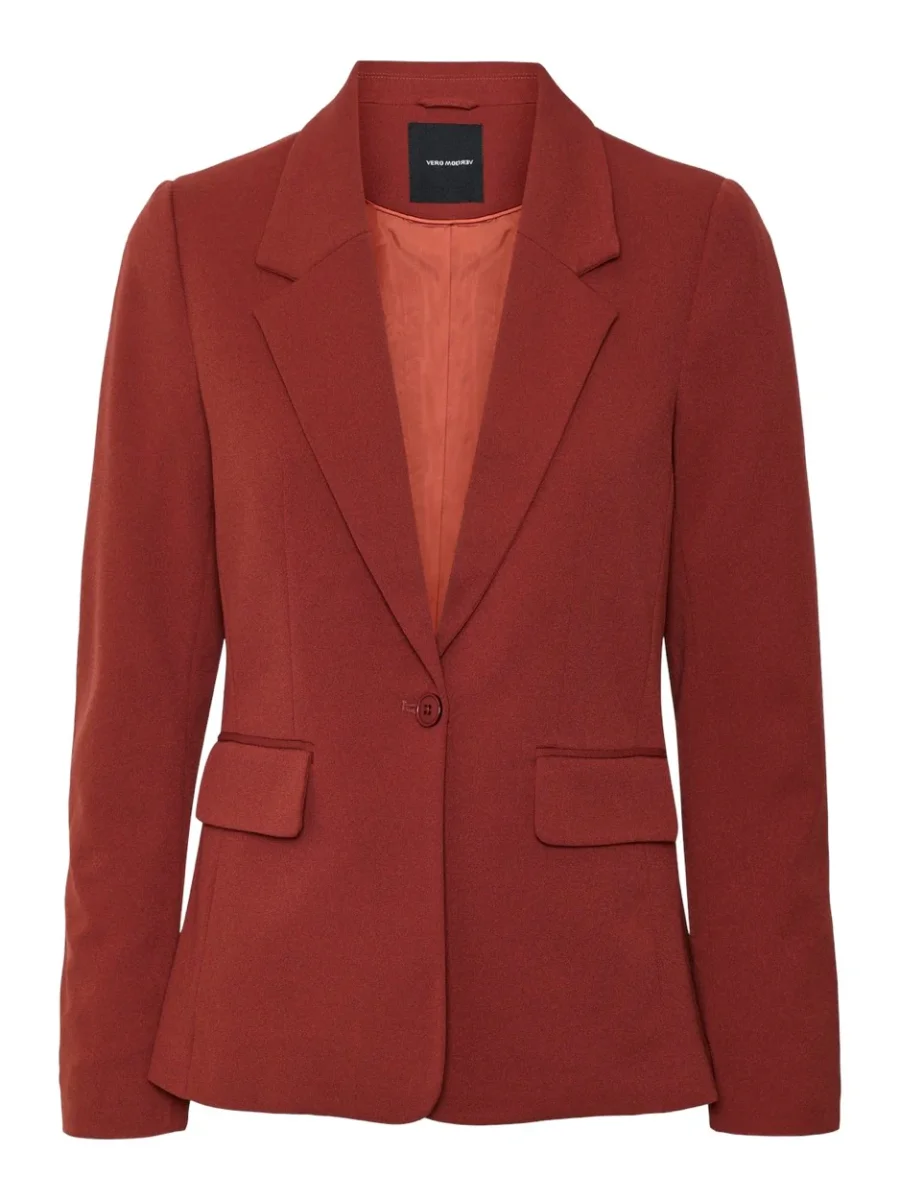 Deze brique kleurige blazer voor dames van het hippe merk Vero Moda is een echte must-have voor je kledingkast. De blazer is niet alleen stijlvol, maar ook duurzaam dankzij het gebruik van 53% gerecycled polyester. Daarnaast zorgt de mix van 42% polyester en 5% elastaan voor een comfortabele en perfecte pasvorm. Trek deze blazer aan voor een zakelijke look of draag hem met een casual outfit voor een trendy touch. Bestel nu deze eco-vriendelijke blazer en draag bij aan een betere wereld, terwijl je er ook nog eens fabulous uitziet!