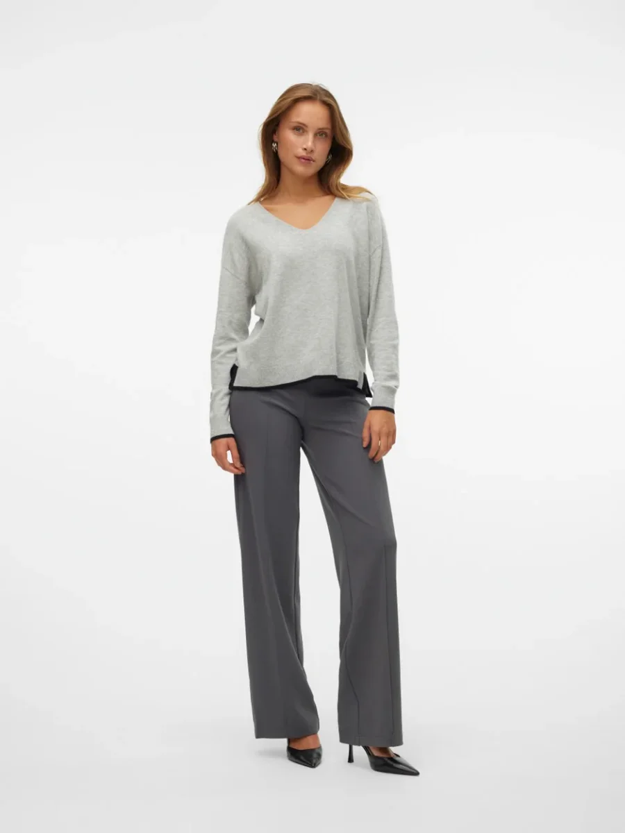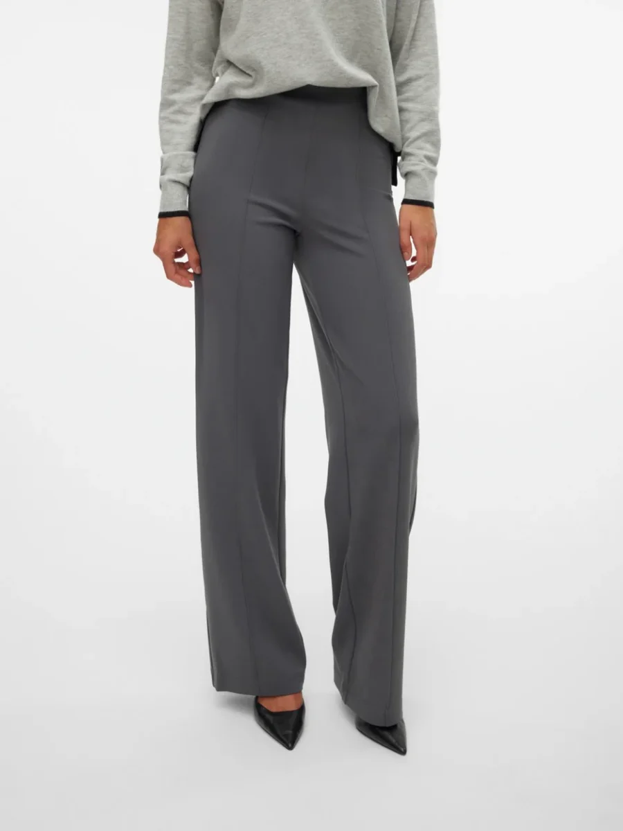 Deze grijze lange broek voor dames van het merk Vero Moda is gemaakt van 95% gerecycled polyester en 5% elastaan. De perfecte combinatie van duurzaamheid en comfort. Het trendy grijs melee kleurtje laat zich makkelijk combineren met verschillende looks en gelegenheden. De broek heeft een slanke pasvorm en valt net boven de enkels, waardoor het je silhouet mooi accentueert. De elastische tailleband zorgt voor een perfecte pasvorm en gemakkelijk draagcomfort. Draag deze stijlvolle broek met een blouse en hakken voor een chique uitstraling of met een oversized trui en sneakers voor een casual look. Bestel nu deze fashionable en milieubewuste broek bij NummerZestien en geniet van de vele mogelijkheden die deze broek te bieden heeft!