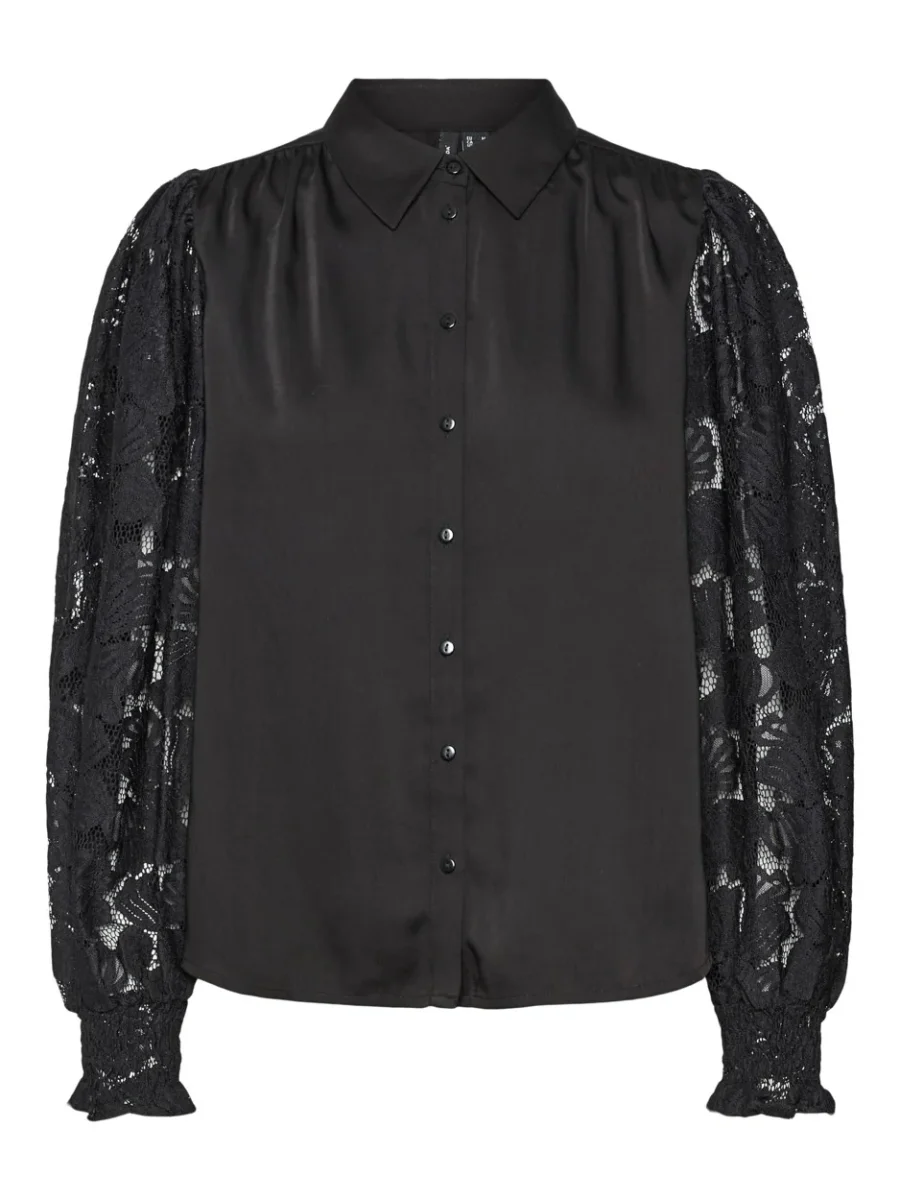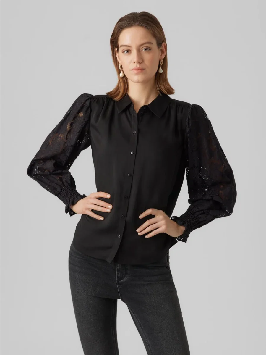 De zwarte Vero Moda blouse van Nummerzestien is een stijlvolle toevoeging aan jouw garderobe. Met zijn volumineuze opengewerkte lange mouwen en overhemdkraag straalt deze blouse een chique en elegantie uit. De blouse is voorzien van een handige knoopsluiting, waardoor deze gemakkelijk aan- en uit te trekken is. Het materiaal van de blouse bestaat uit 60% polyester, 30% katoen en 10% polyamide, wat zorgt voor een comfortabele en luchtige pasvorm. Combineer deze tijdloze blouse met een mooie jeans en pumps voor een zakelijke look of draag hem met een rok en sneakers voor een trendy outfit. Bestel nu deze prachtige zwarte Vero Moda blouse en creëer eindeloos veel stijlvolle en vrouwelijke looks!