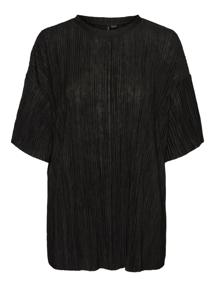 De zwarte Vero Moda top is de perfecte toevoeging aan jouw kledingkast! Dit trendy t-shirt voor dames is gemaakt van 100% polyester en heeft een plissé structuur, wat zorgt voor een stijlvolle en speelse look. De driekwart mouwen en de ronde hals geven de top een klassieke uitstraling, terwijl de wijde mouwen met verlaagde schoudernaden zorgen voor een elegante touch. Het oversized model van deze top geeft je een comfortabele en nonchalante uitstraling. Ideaal om te dragen tijdens zowel casual als meer formele gelegenheden. Met deze Vero Moda top ben je dus altijd verzekerd van een modieuze look! Bestel nu en ontvang deze must-have binnen enkele dagen in huis.