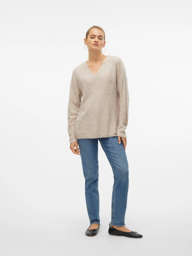 De perfecte toevoeging aan je herfst- en wintergarderobe: deze beige trui voor dames van het populaire merk Vero Moda. Gemaakt van een zachte mix van 70% acryl, 27% nylon en 3% elastaan, biedt deze trui niet alleen warmte en comfort, maar ook een trendy look. De neutrale kleur maakt het gemakkelijk te combineren met elke outfit. De trui heeft een klassieke ronde hals en een losse pasvorm voor een casual en relaxte uitstraling. Draag hem op een skinny jeans en sneakers voor een alledaagse look, of combineer het met een kokerrok en laarzen voor een meer geklede outfit. Trek deze trui aan en je zult er zeker stijlvol uitzien en je warm en comfortabel voelen! Shop nu deze must-have trui bij NummerZestien en voeg hem toe aan je collectie.