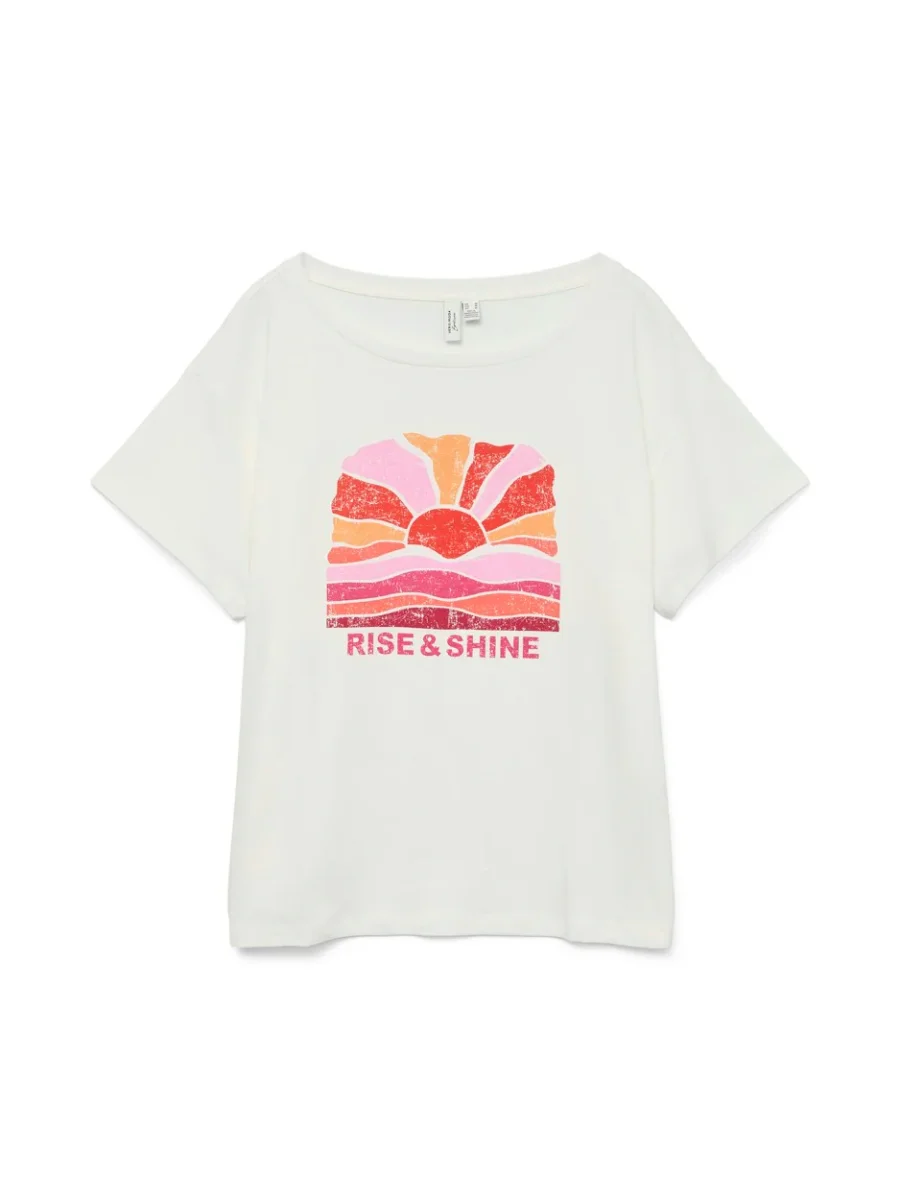 Geef je garderobe een frisse touch met dit stijlvolle off-white t-shirt van Vero Moda! Gemaakt van 100% katoen voor ultiem comfort en ademend vermogen, is dit shirt een must-have voor elke fashion-forward dame. De korte mouwen maken het perfect voor de lente en zomer en de neutrale kleur is gemakkelijk te combineren met welke outfit dan ook. Of je het nu draagt op een spijkerbroek of een rok, dit t-shirt voegt een subtiele, maar stijlvolle twist toe aan je look. Bestel nu en geef je kledingkast een upgrade met dit prachtige off-white t-shirt van Vero Moda!