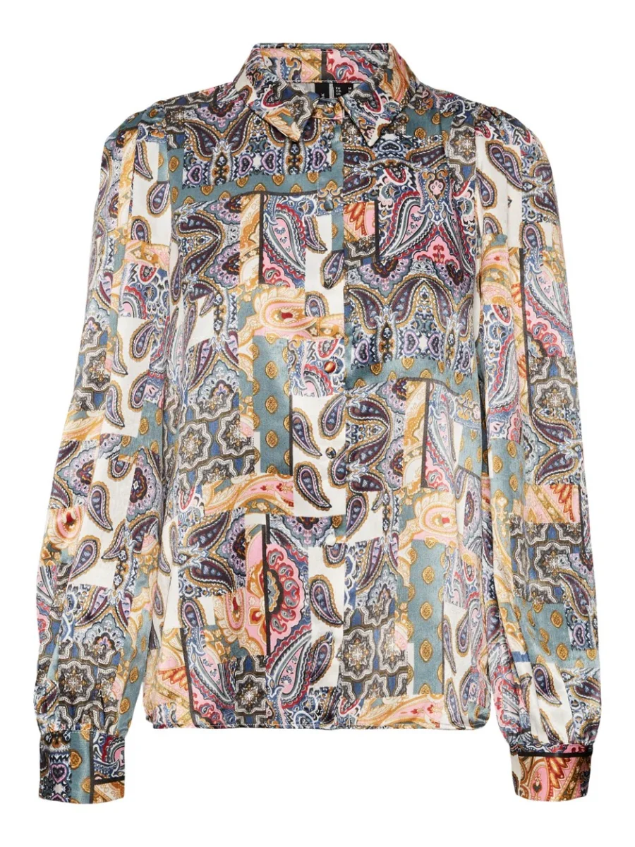 De multicolor blouse van Vero Moda is een must-have voor elke vrouwelijke garderobe. Deze prachtige blouse heeft een speels en kleurrijk dessin, bestaande uit verschillende tinten blauw. Door de all-over print is deze blouse een echte eye-catcher. De blouse is gemaakt van 100% polyester, waardoor het licht en comfortabel draagt.