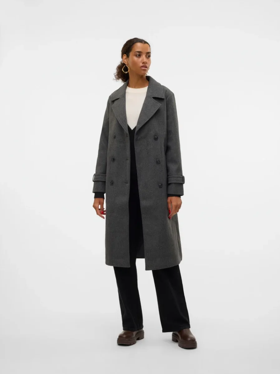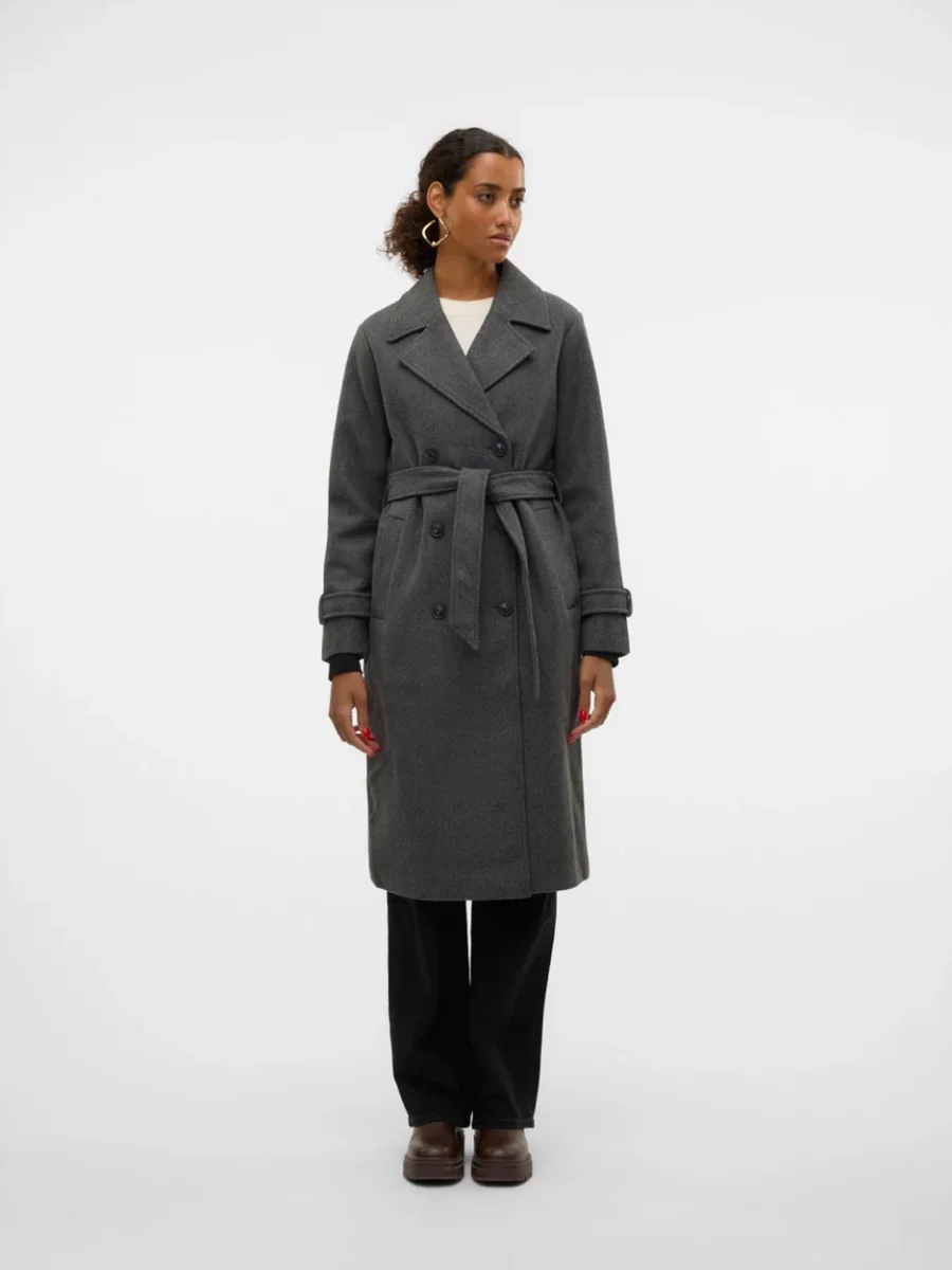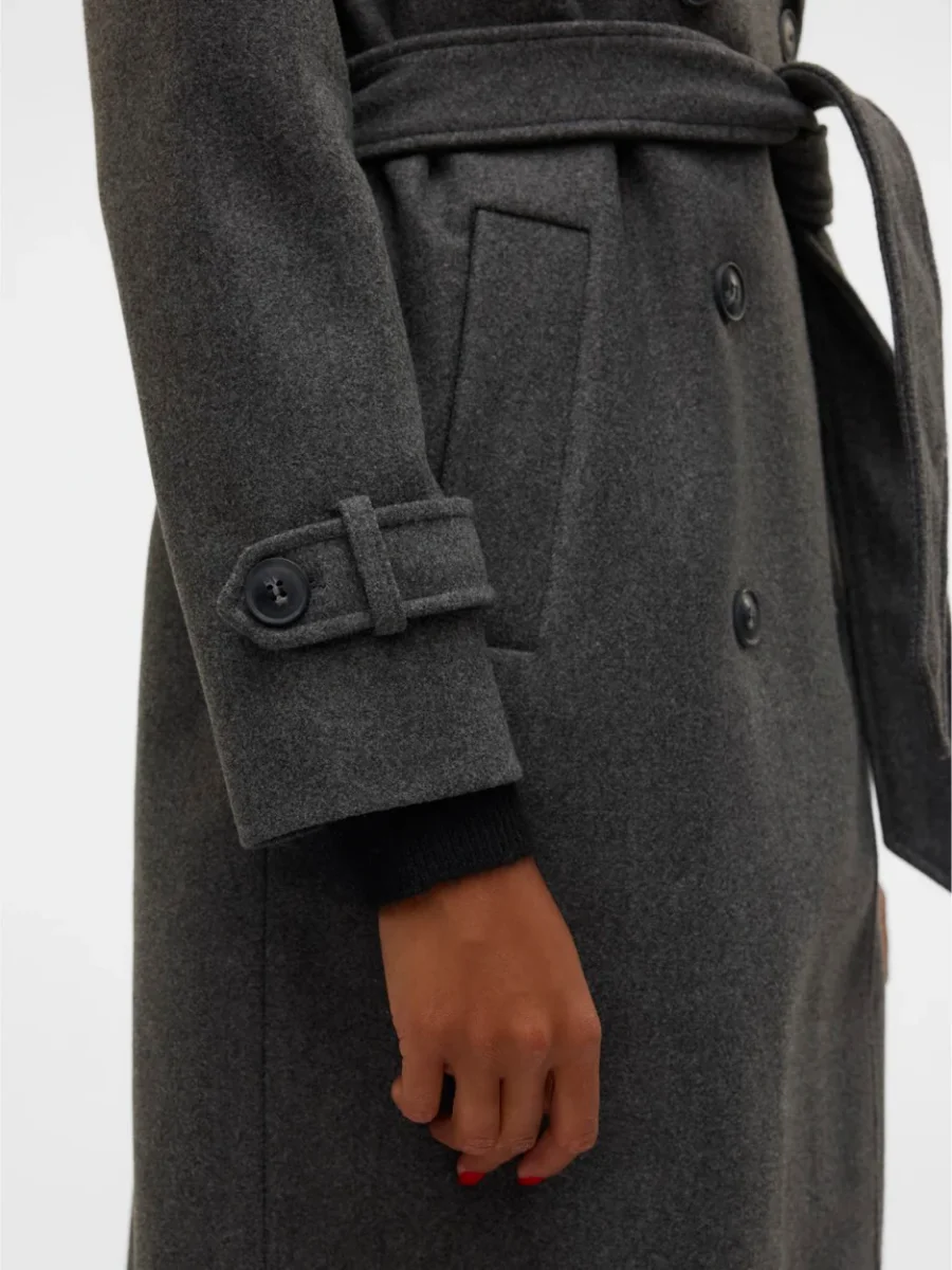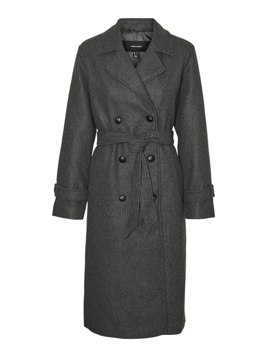 De perfecte aanvulling op je herfst- en wintergarderobe: deze unieke en stijlvolle antracietkleurige trenchcoat van het populaire merk Vero Moda. Met een mix van 50% gerecycled polyester en 50% polyester, is deze jas niet alleen modieus maar ook duurzaam. De trenchcoat heeft een tijdloos ontwerp met een knoopsluiting, een klassieke kraag en een ceintuur in de taille om je figuur te accentueren. Perfect voor zowel formele als informele gelegenheden, deze jas is een must-have item voor elke fashionista. Bestel nu en laat je stijl stralen met deze adembenemende trenchcoat van NummerZestien!
