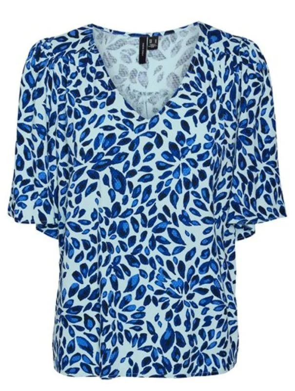 Laat je vrouwelijke kant schitteren met deze prachtige blauw dessin kleurige top van Vero Moda, nu verkrijgbaar bij Nummerzestien! De Vero Moda Gwen top is gemaakt van 100% viscose, waardoor het heerlijk zacht en comfortabel aanvoelt op je huid. De top heeft een flatterende pasvorm met korte mouwen, perfect voor de warmere dagen. De prachtige blauwe dessin print geeft deze top een speelse en vrolijke touch. Draag het overdag op een stoere jeans voor een casual look of combineer het met een elegante rok voor een avondje uit. Bestel nu en maak je zomergarderobe compleet met deze must-have top van Vero Moda!